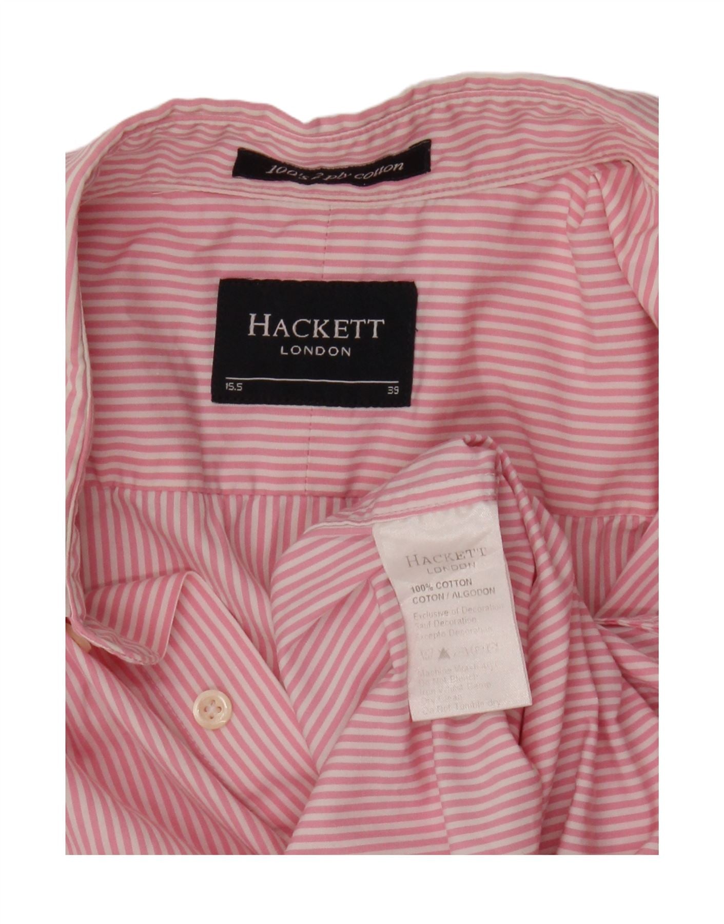 HACKETT Mens Formal Shirt Size 15 1/2 39 Medium Pink Pinstripe Cotton