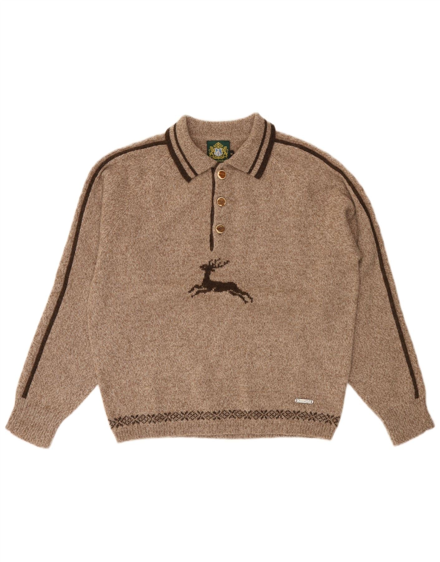 HAMMERSCHMID Ανδρικό πουλόβερ με γραφικό πόλο με λαιμόκοψη σε μεσαίο καφέ