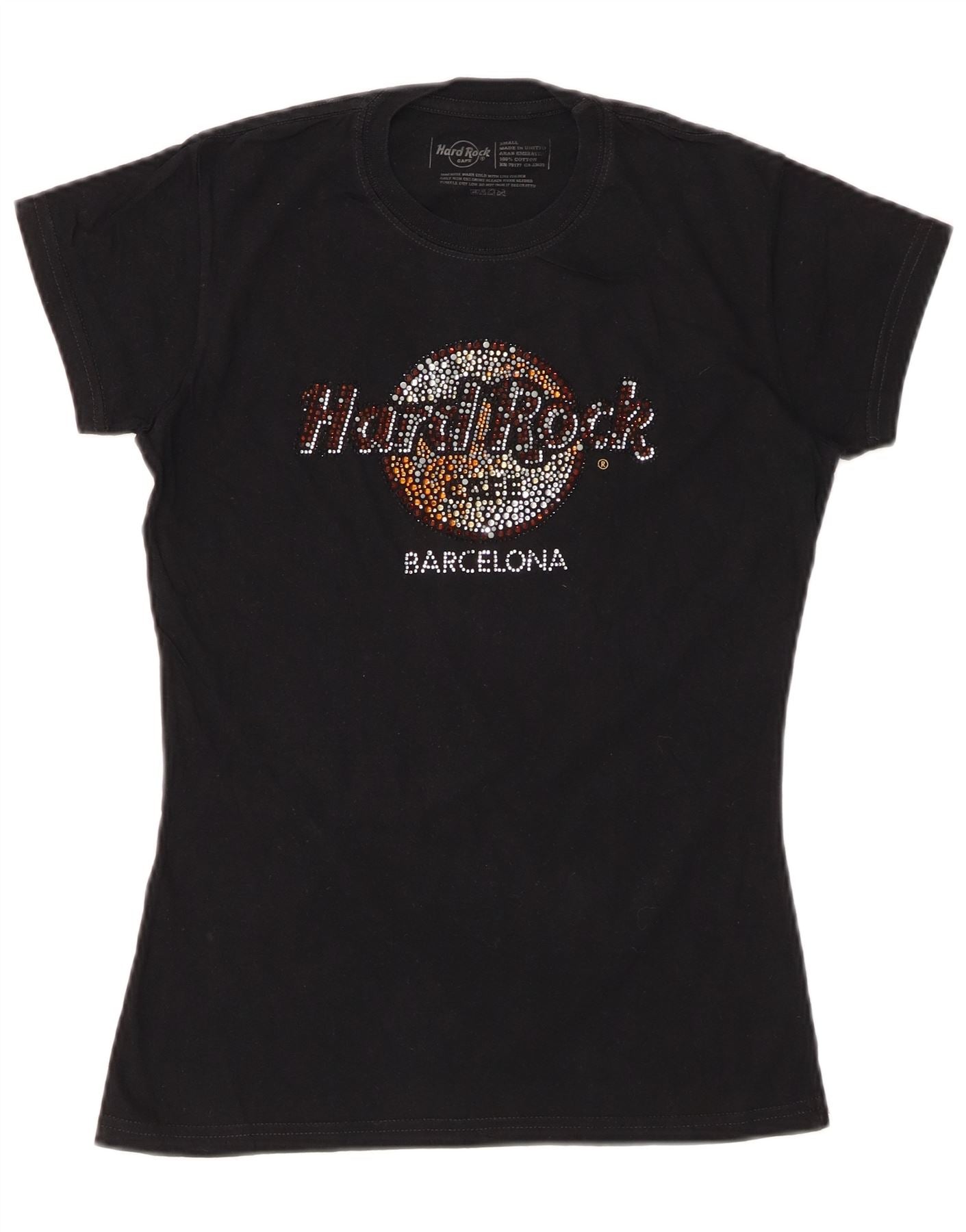HARD ROCK CAFE Γυναικείο γραφικό μπλουζάκι Barcelona Top UK 10 Small Black