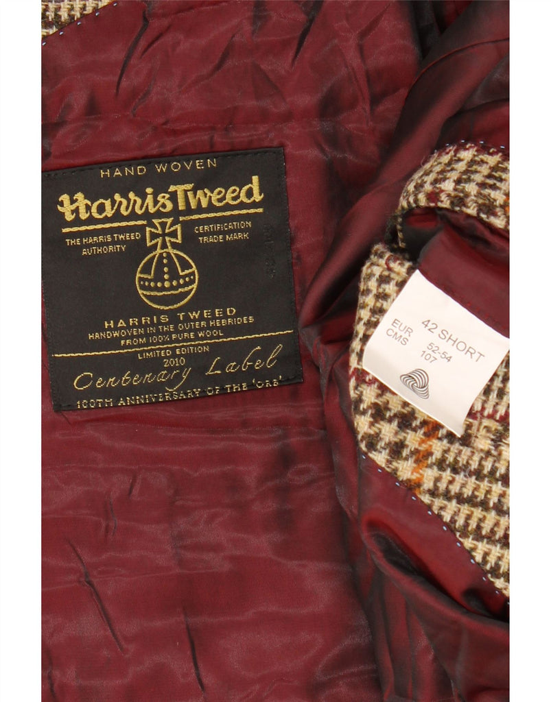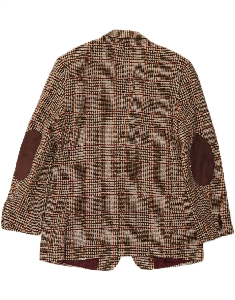 HARRIS TWEED Mens 2 Button Blazer Jacket UK 42 XL Brown Houndstooth Wool