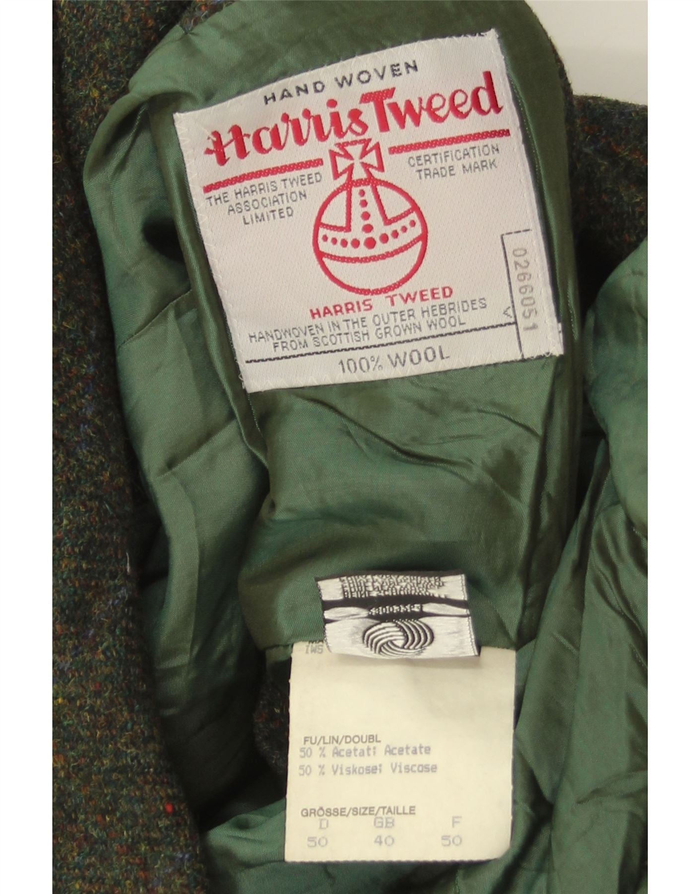 HARRIS TWEED Mens 3 Button Blazer Jacket UK 40 Large Khaki Check Wool