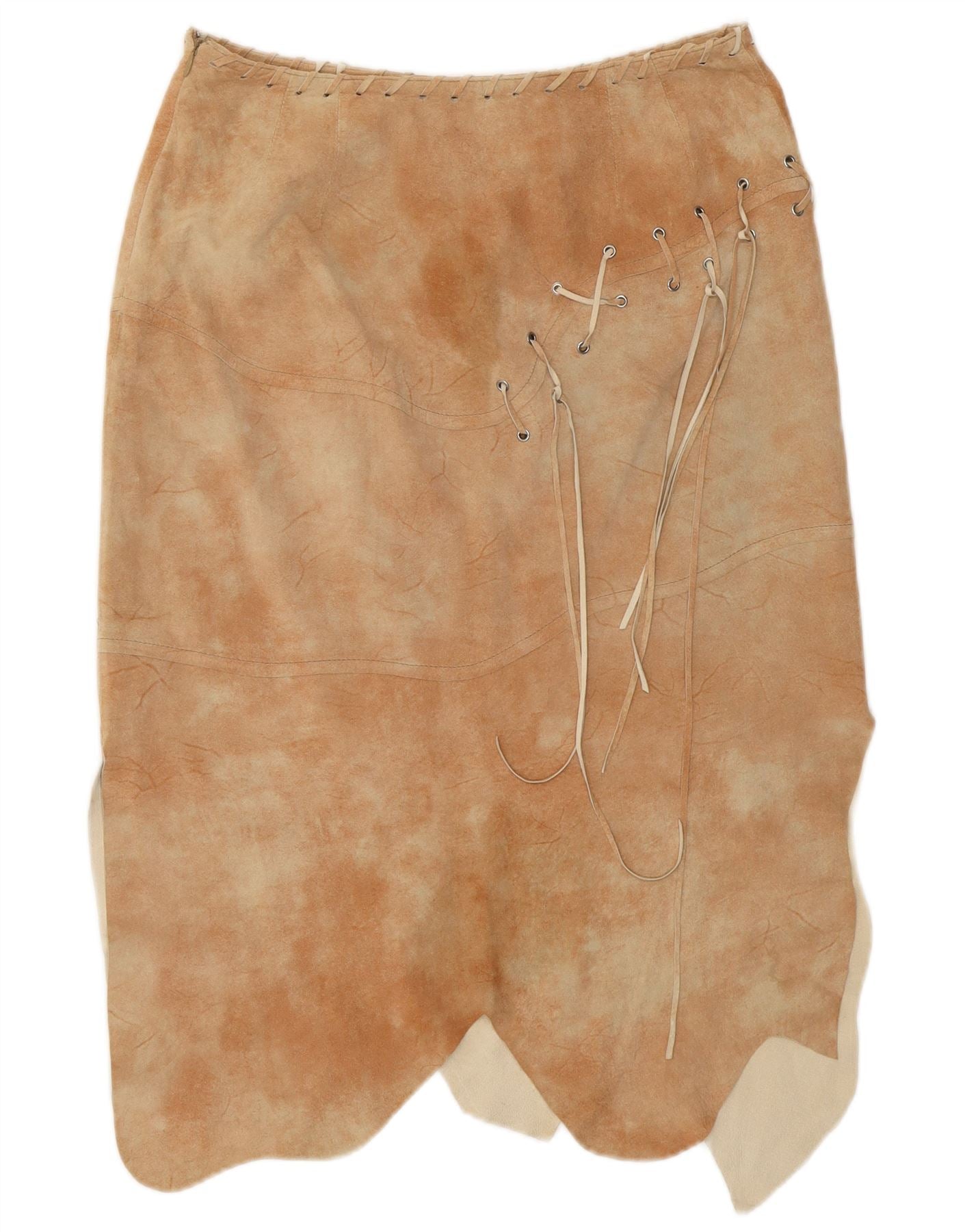 HELLINE Γυναικεία ασύμμετρη φούστα UK 14 Large W30 Beige Tie Dye Leather