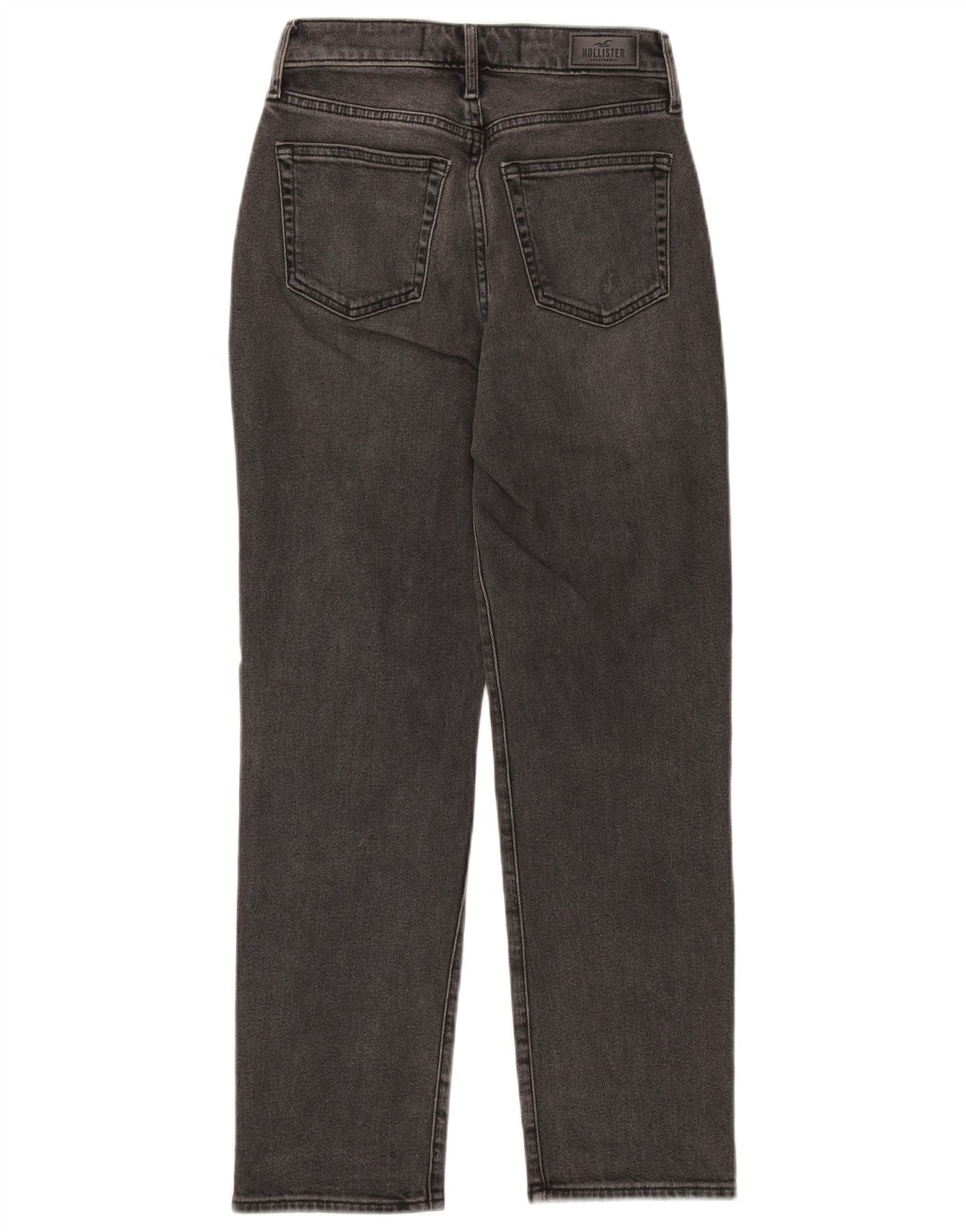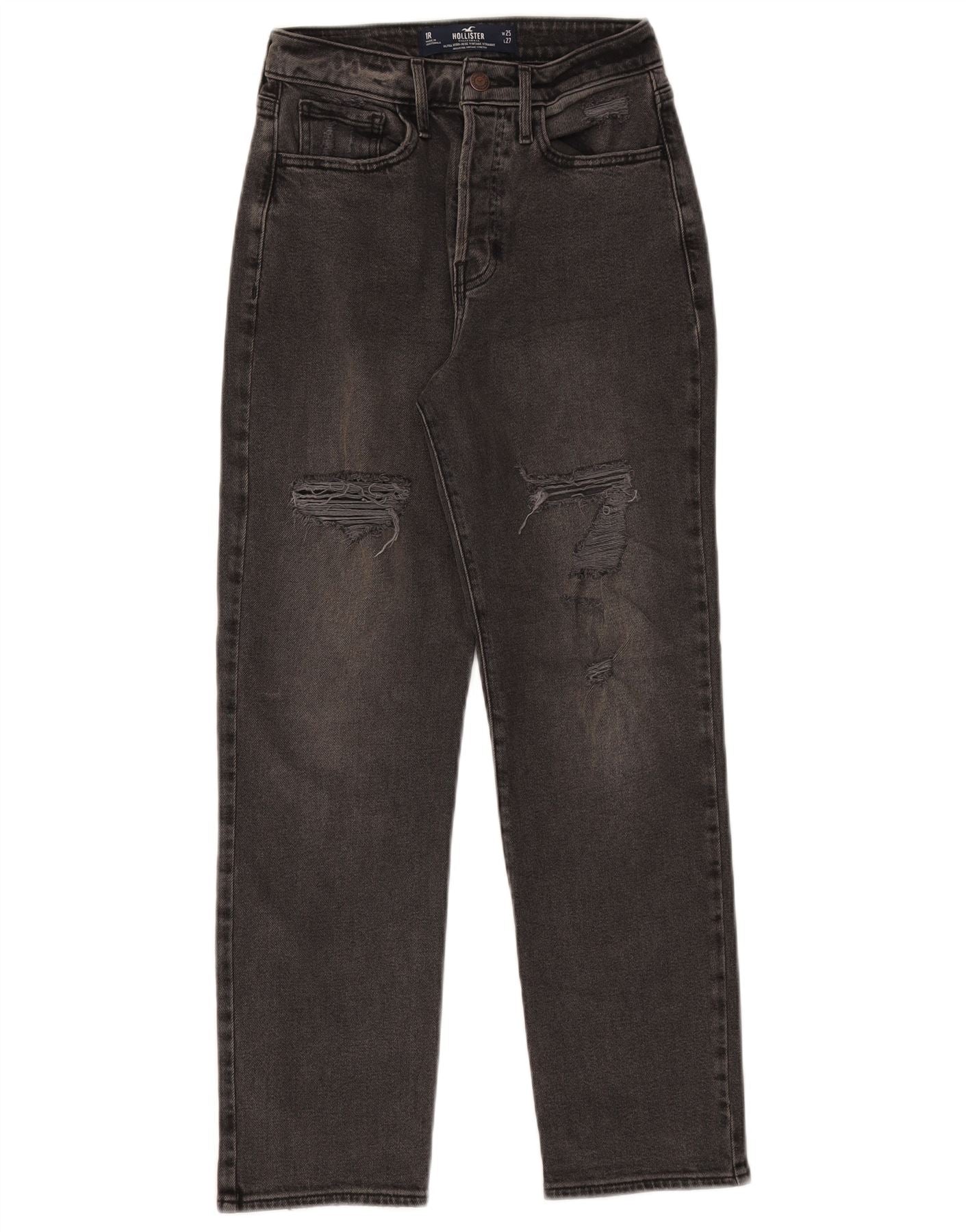 HOLLISTER γυναικείο ταλαιπωρημένο ψηλό ίσιο τζιν W25 L27 μαύρο βαμβακερό