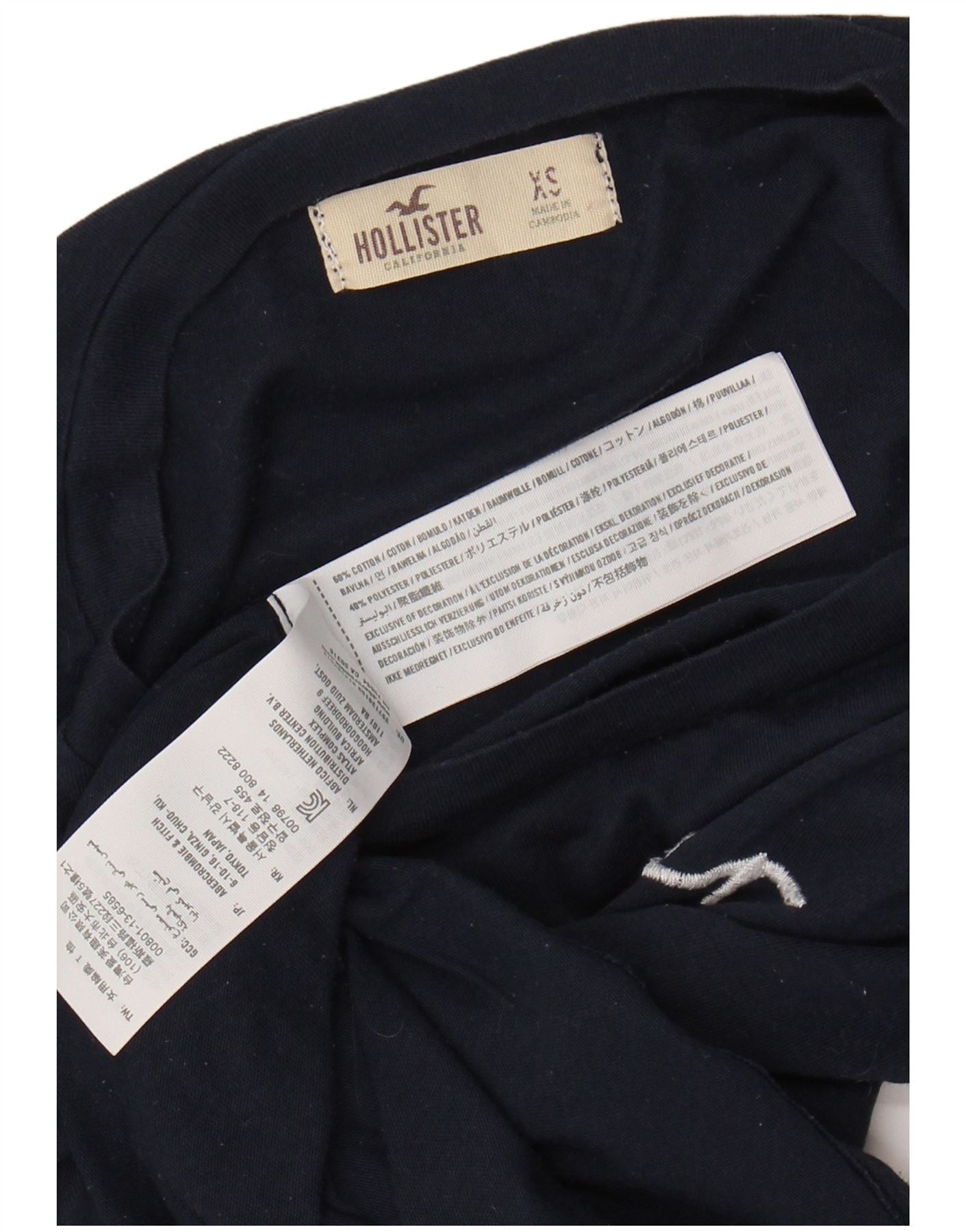 Γυναικείο γραφικό μπλουζάκι HOLLISTER Top UK 6 XS Navy Blue Cotton