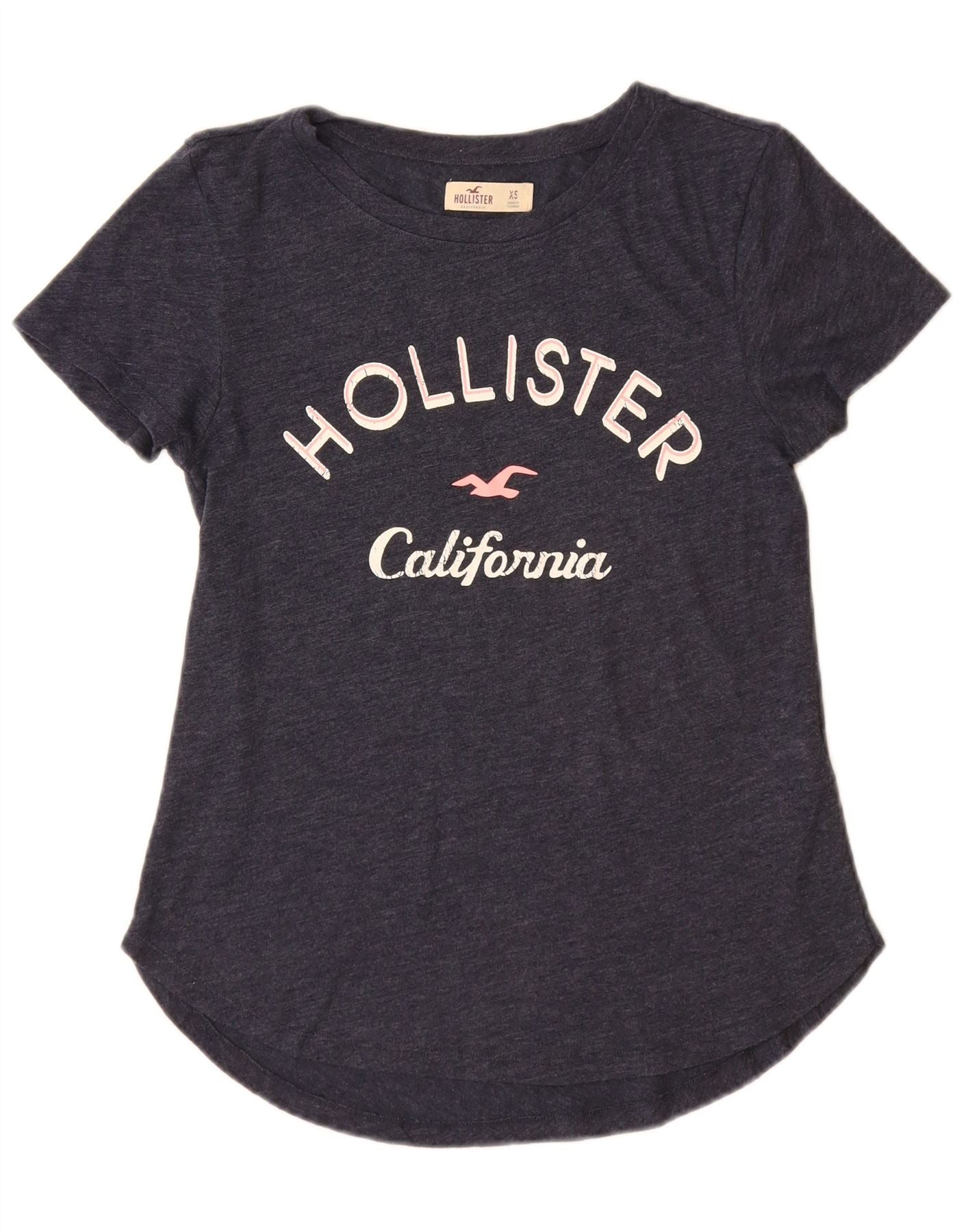 Γυναικείο γραφικό μπλουζάκι HOLLISTER Top UK 6 XS Navy Blue Cotton