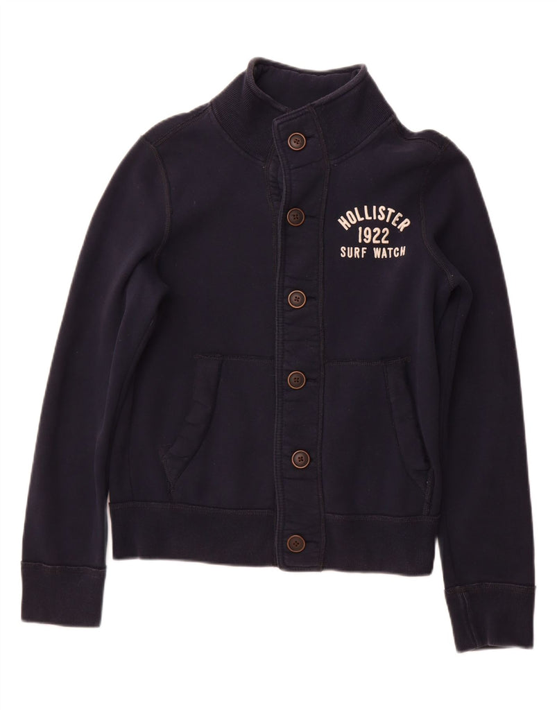 HOLLISTER Γυναικεία φόρμα αθλητικής φόρμας γραφικά Top Jacket UK 10 Small Navy Blue Cotton