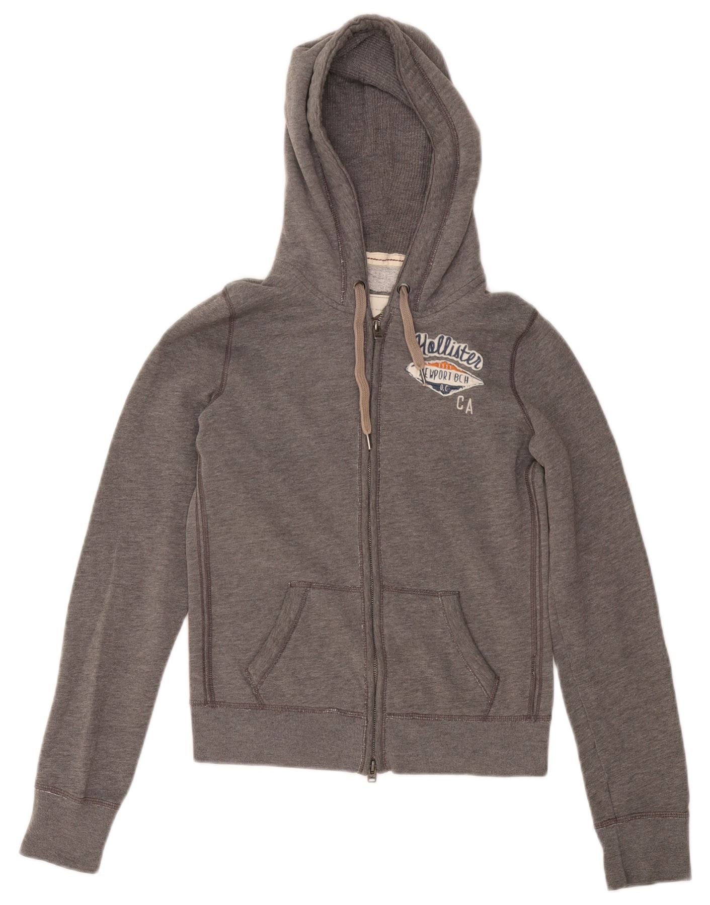 HOLLISTER Γυναικείο πουλόβερ με κουκούλα με φερμουάρ UK 10 μικρό γκρι βαμβακερό