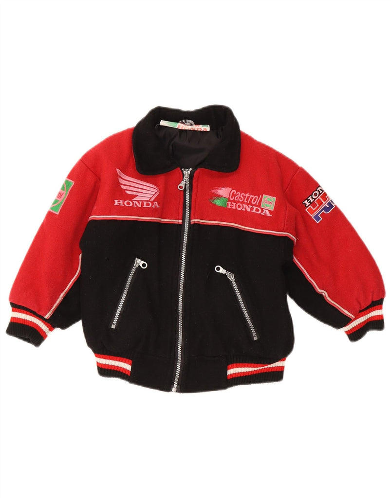 HONDA Baby Girls Graphic Bomber Jacket 18-24 Months Red Colourblock Wool