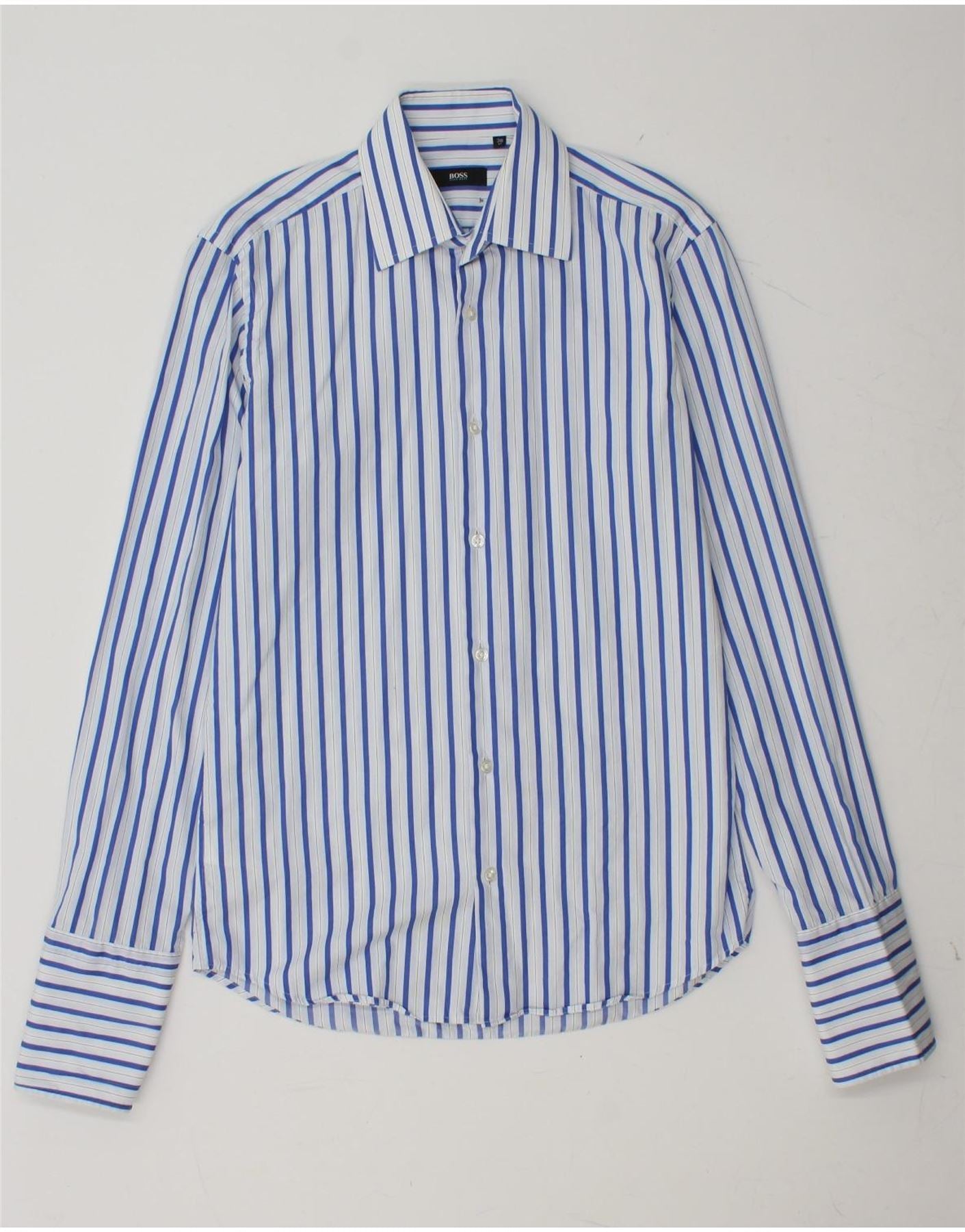 Ανδρικό επίσημο πουκάμισο HUGO BOSS νούμερο 38 15 Μεσαίο μπλε βαμβακερό ριγέ