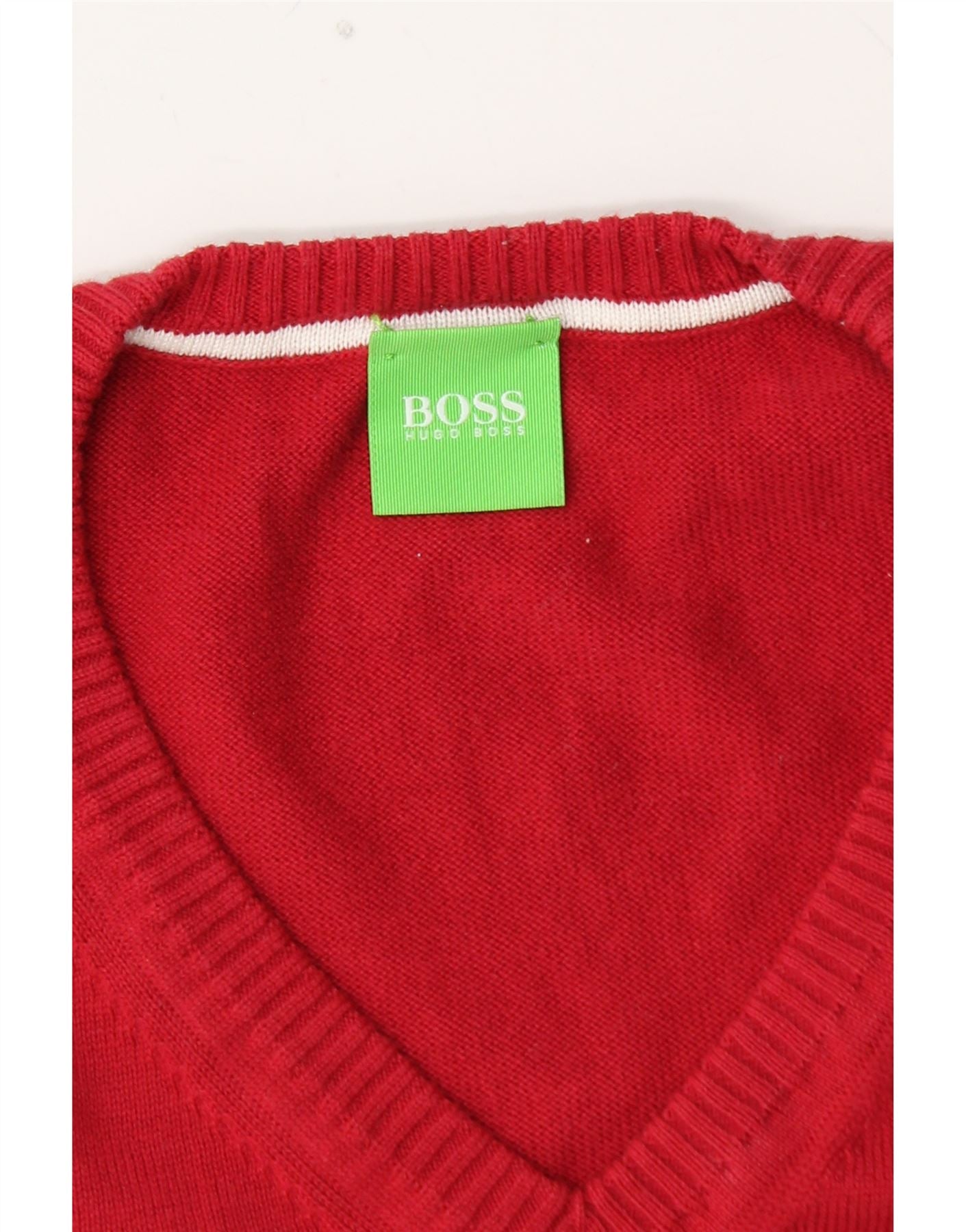 Ανδρικό πουλόβερ HUGO BOSS με γραφικό V λαιμόκοψη, μεγάλο κόκκινο χρώμα