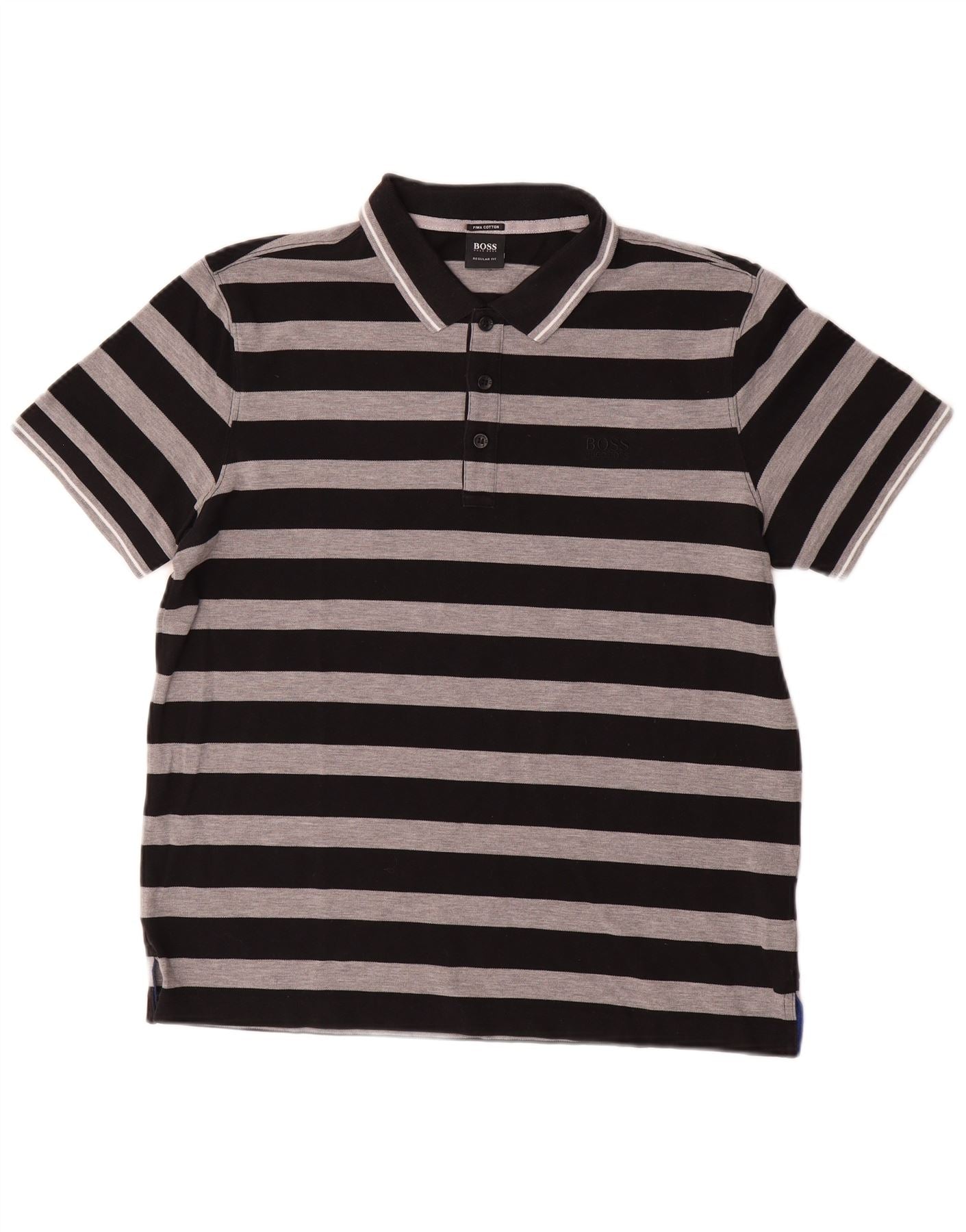 Ανδρικό μπλουζάκι πόλο Hugo Boss Regular Fit, μεγάλο μαύρο ριγέ βαμβακερό