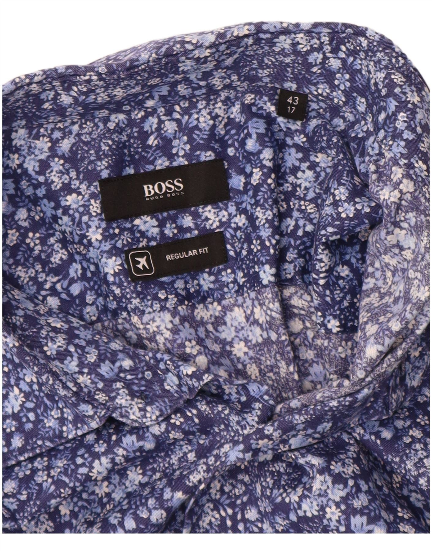 Ανδρικό πουκάμισο Hugo Boss Regular Fit, μέγεθος 43 17 XL Μπλε φλοράλ βαμβακερό