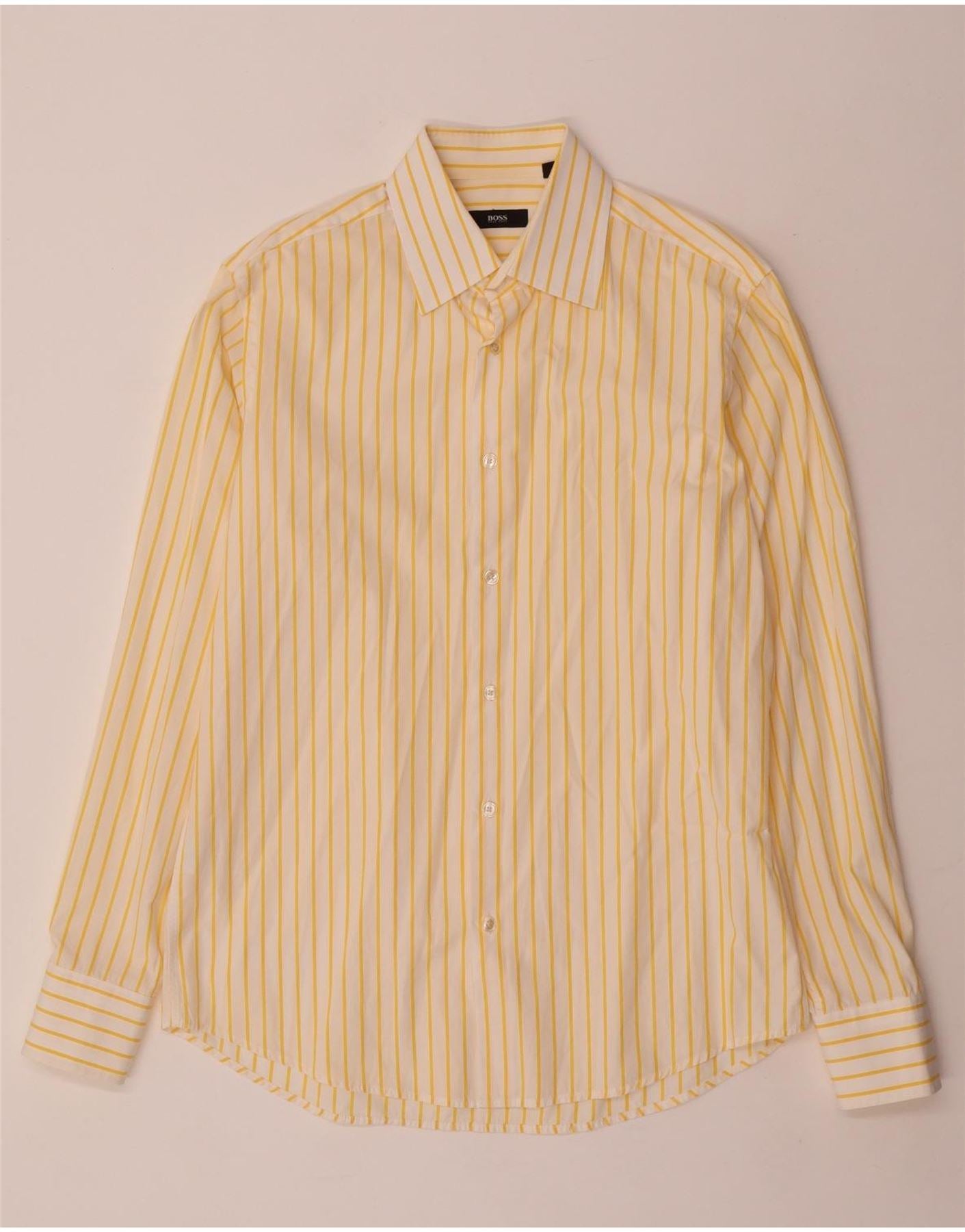 Ανδρικό πουκάμισο HUGO BOSS 40 15 3/4 μεσαίο κίτρινο βαμβακερό ριγέ