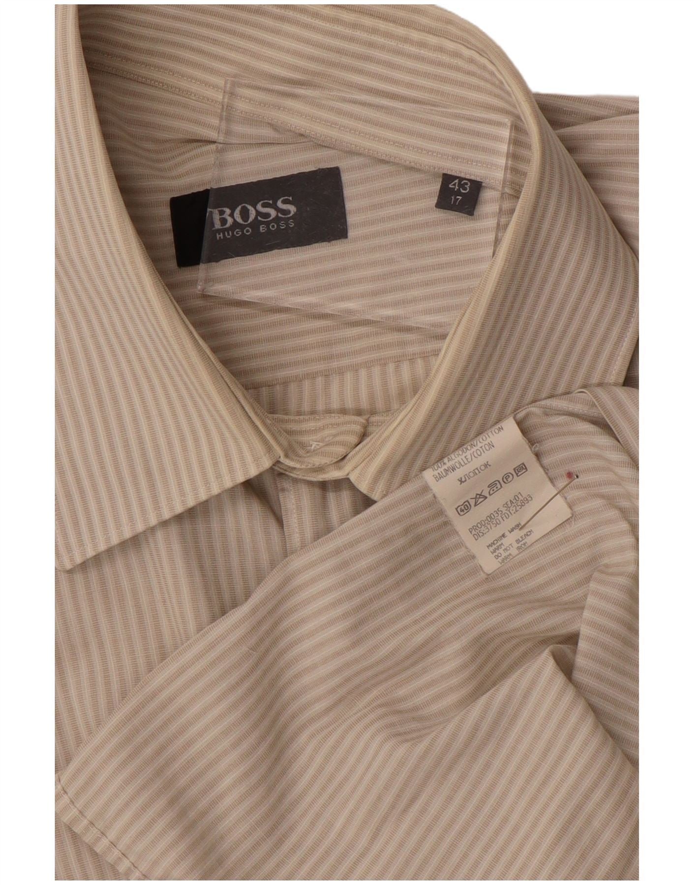 Ανδρικό πουκάμισο HUGO BOSS 43 17 XL Μπεζ ριγέ βαμβακερό