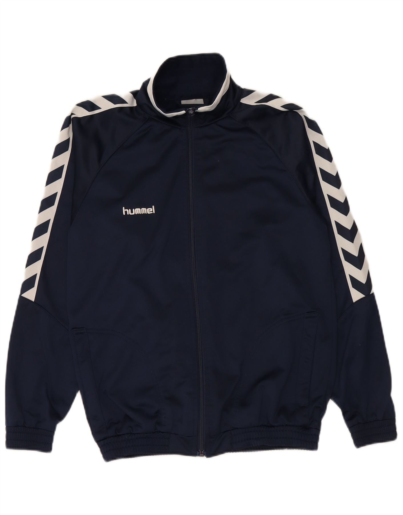 HUMMEL Boys Tracksuit Top Jacket 15-16 Years Navy Blue Geometric Polyester
