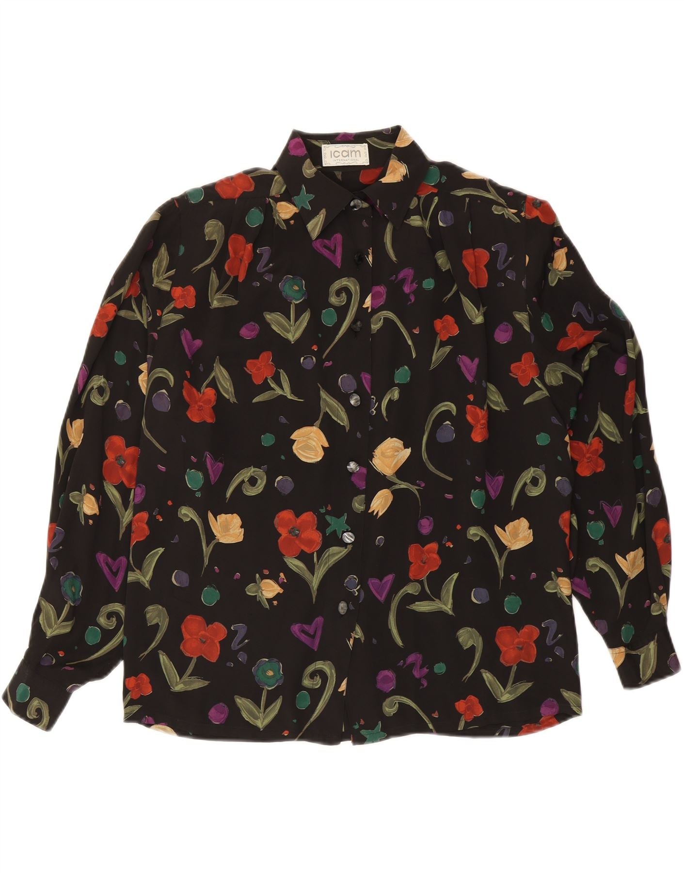 Γυναικείο πουκάμισο ICAM Μπλούζα IT 46 Large Black Floral Acetate