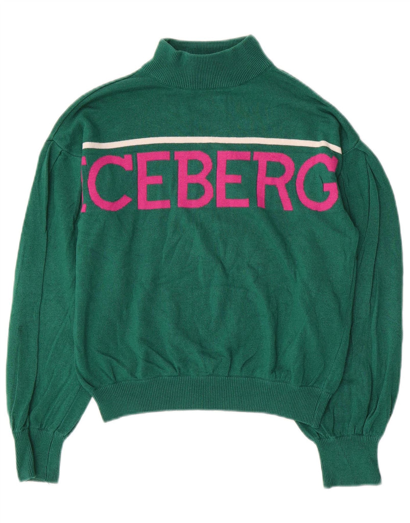 ICEBERG Girls Graphic Turtle Neck Jumper Sweater 10-11 Years Green Viscose