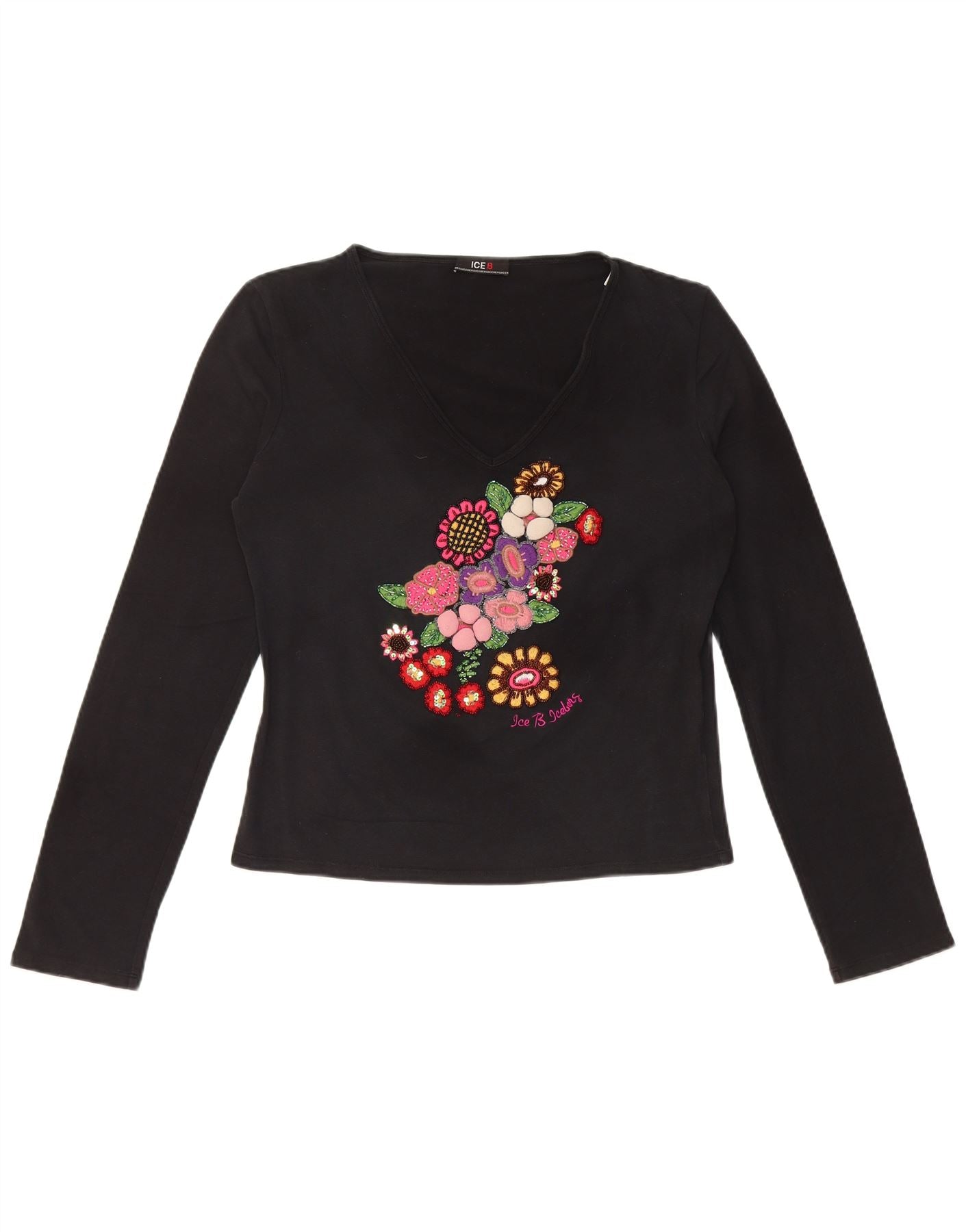 ICEBERG Γυναικείο Crop Graphic Top Μακρυμάνικο IT 46 Large Black Floral