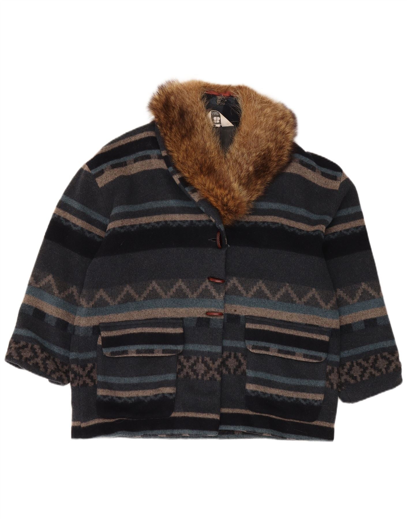 INSIEME γυναικείο μπουφάν Duffle UK 16 Medium πολύχρωμο ριγέ Αζτέκο