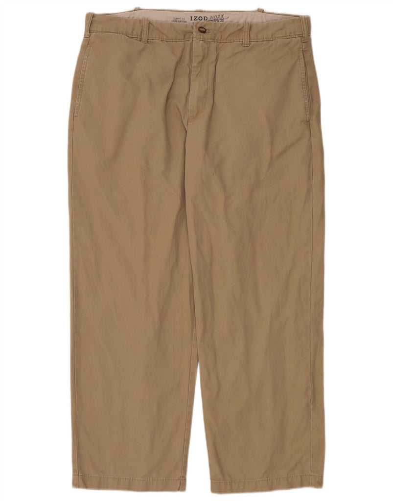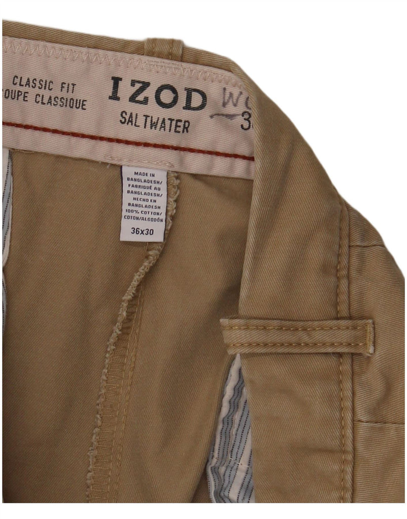 IZOD Mens Salt Water Classic Fit Straight Chino Trousers W36 L30 Beige
