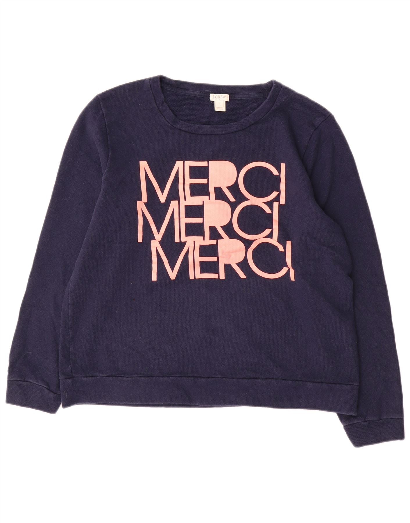 Γυναικείο γραφικό φούτερ J. CREW Jumper UK 16 Large Navy Blue Cotton