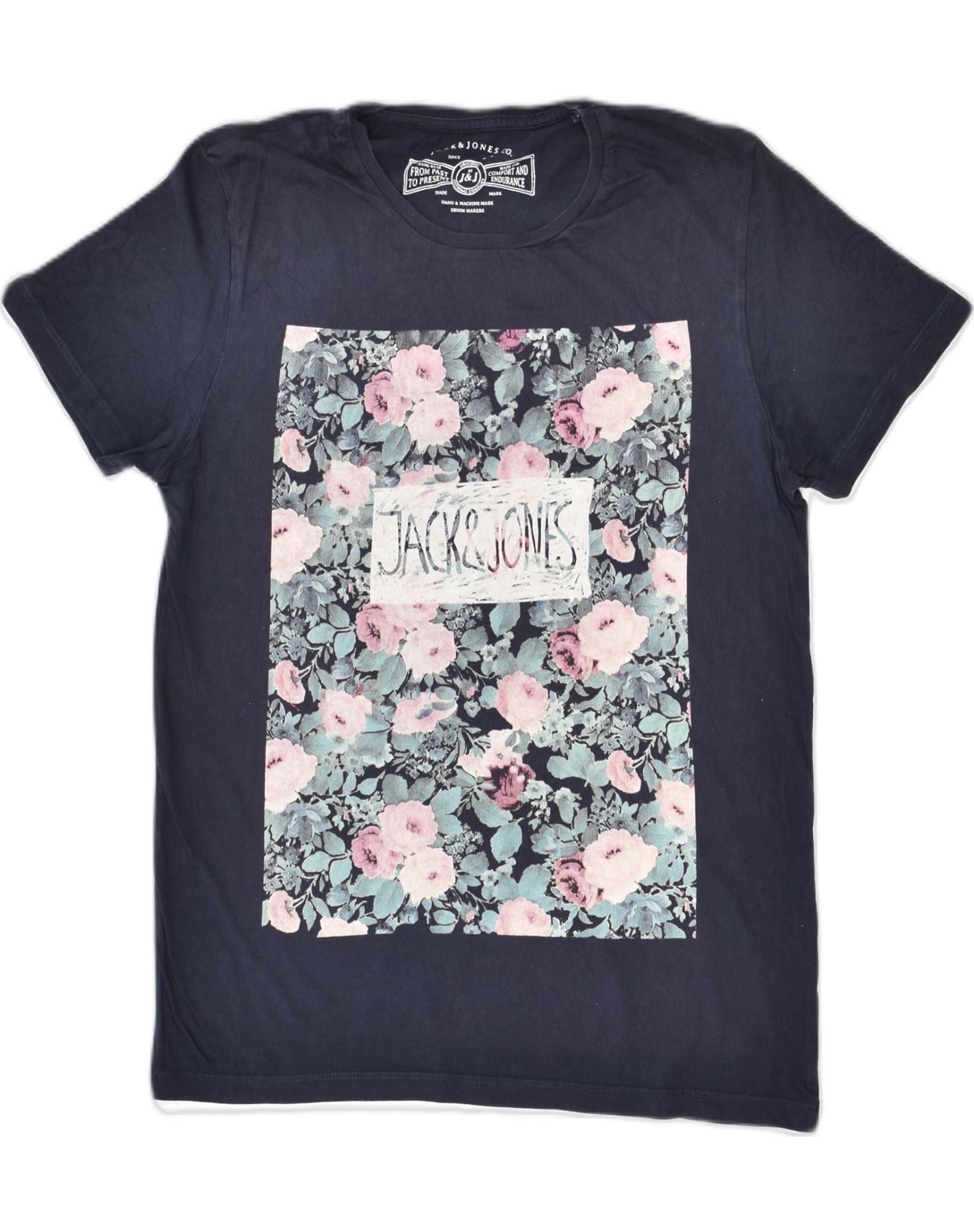 Ανδρικό γραφικό μπλουζάκι JACK & JONES Τοπ μεσαίο μπλε ναυτικό φλοράλ βαμβακερό