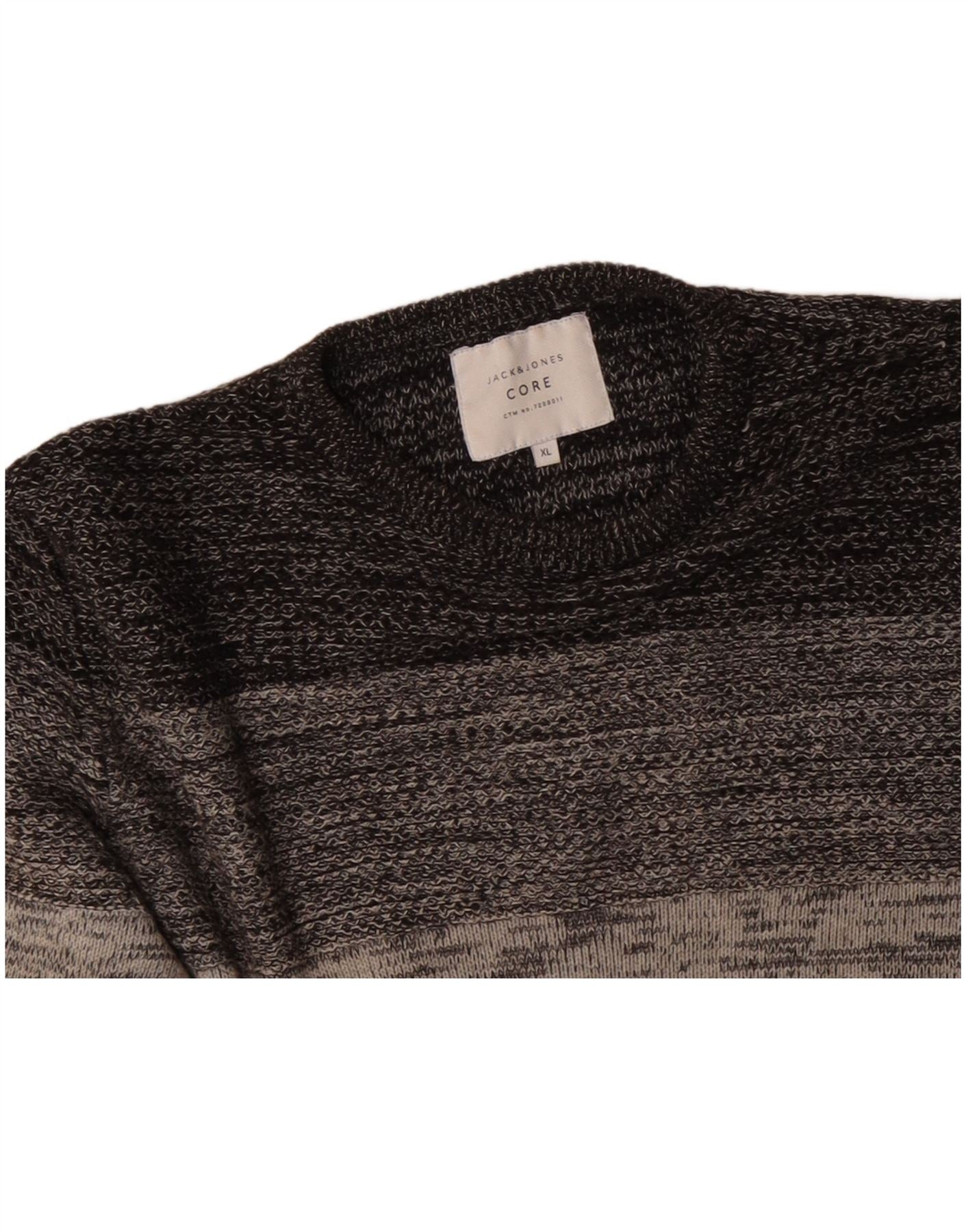 JACK & JONES Ανδρικό πουλόβερ με λαιμόκοψη XL γκρι βαμβακερό ριγέ