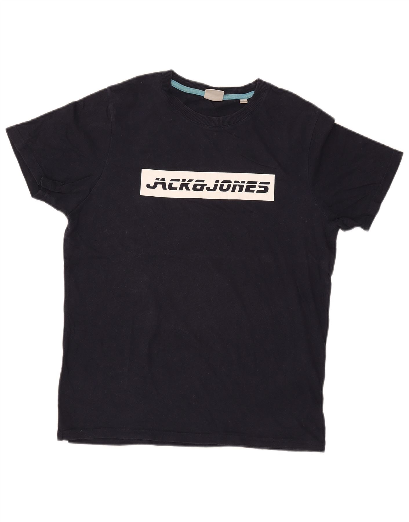 Ανδρικό γραφικό μπλουζάκι JACK & JONES Τοπ μεσαίου μπλε βαμβακερό