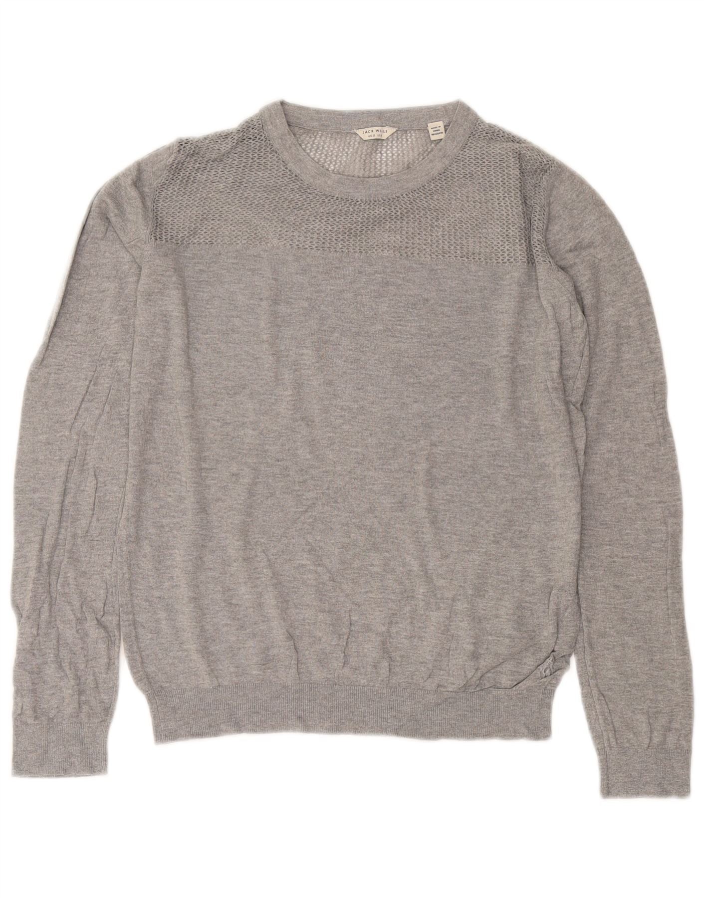 Jack Wills Γυναικείο πουλόβερ με λαιμόκοψη UK 12 μεσαίου γκρι βαμβακερό