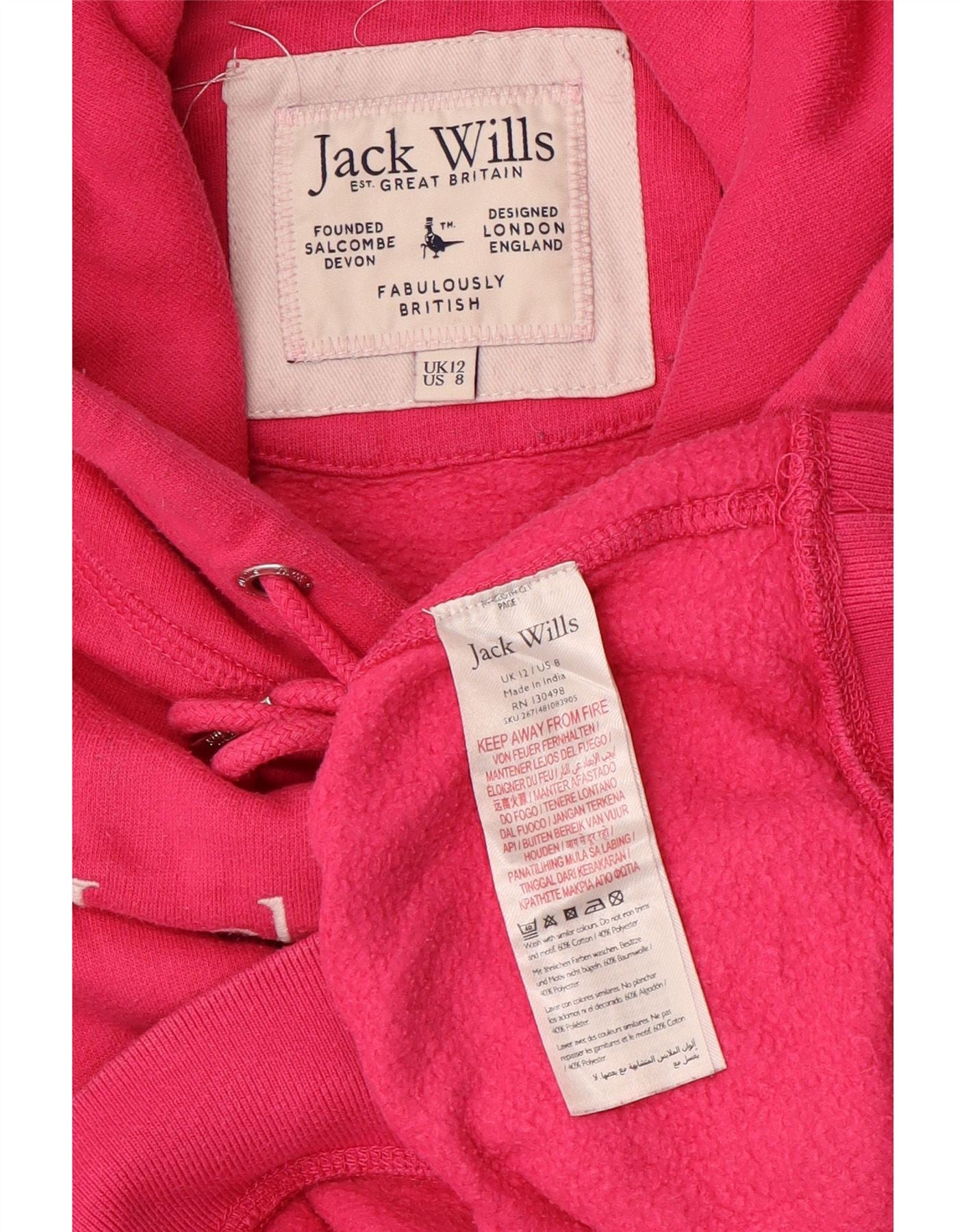 JACK WILLS Γυναικείο υπερμεγέθη Crop Graphic Hoodie Jumper UK 12 Medium Pink