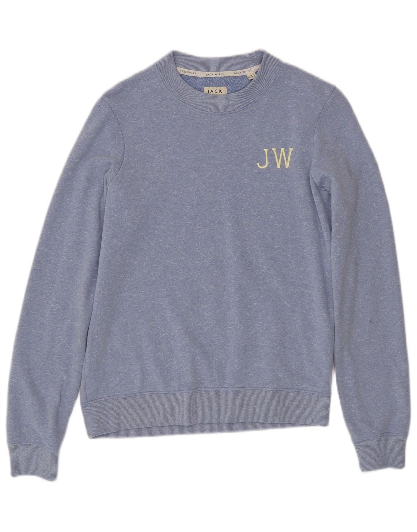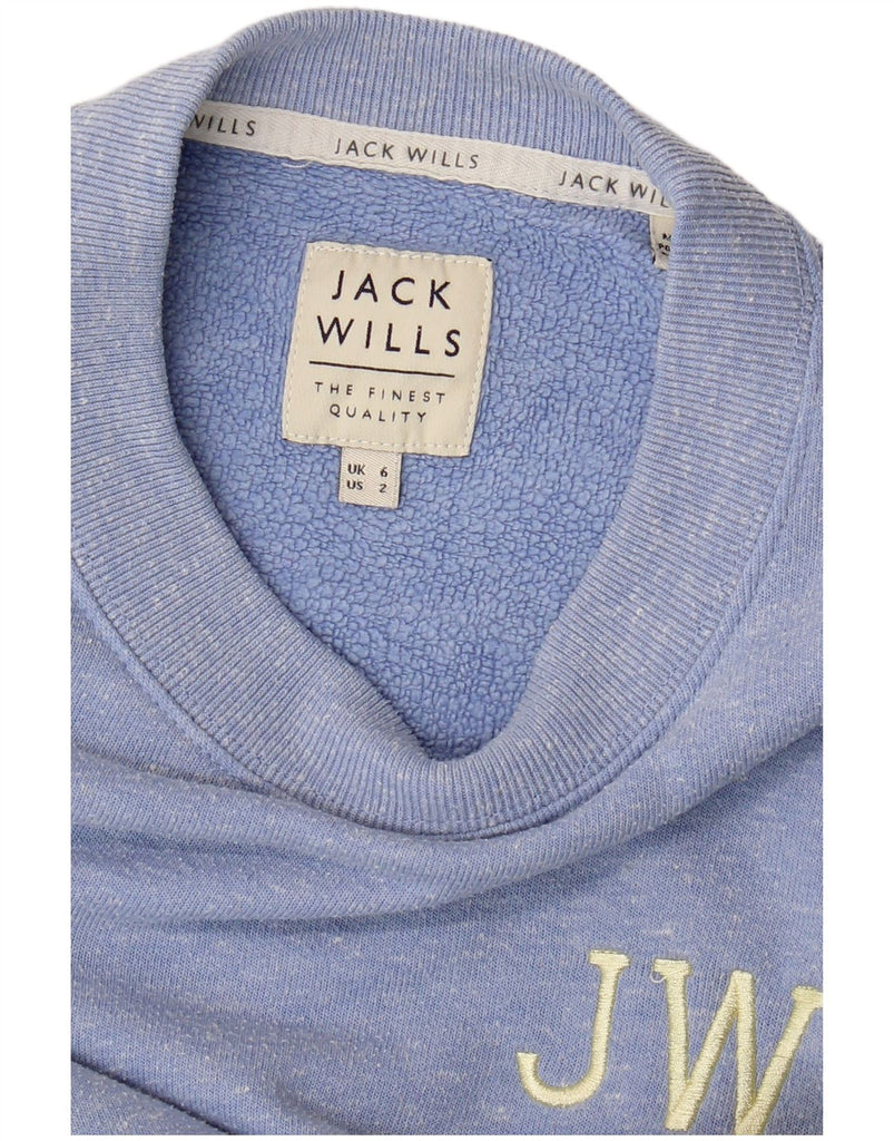 JACK WILLS Womens Oversized Graphic Sweatshirt Jumper UK 6 XS Blue Flecked