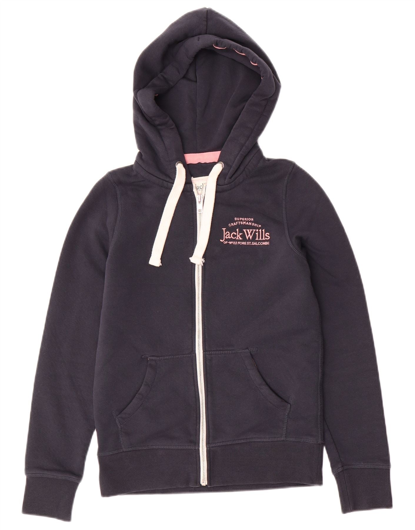 JACK WILLS Γυναικείο πουλόβερ με κουκούλα με φερμουάρ UK 4 XS Navy Blue Cotton
