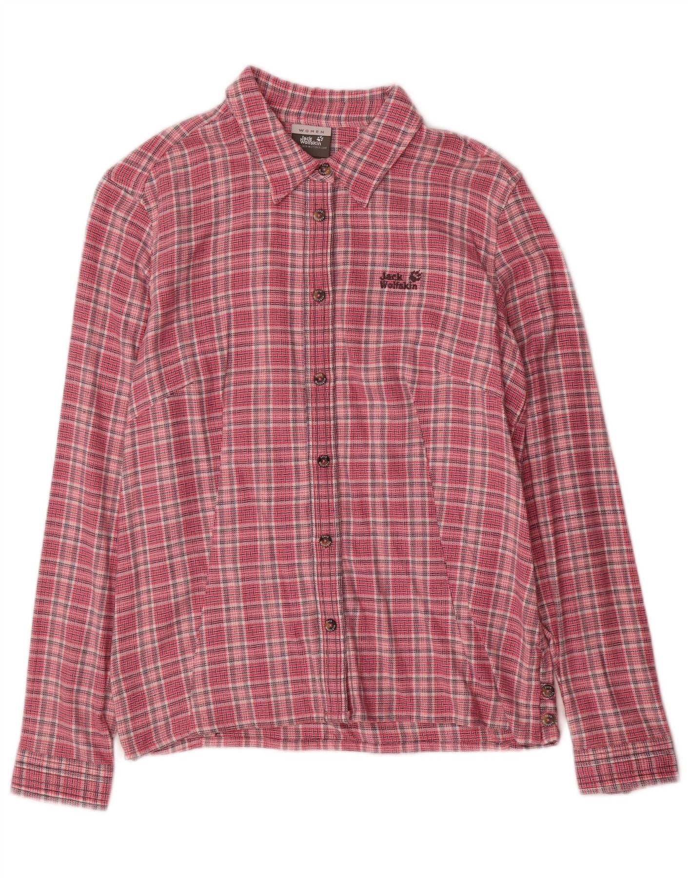 JACK WOLFSKIN Womens Flannel Shirt UK 12 Medium Pink Check Cotton