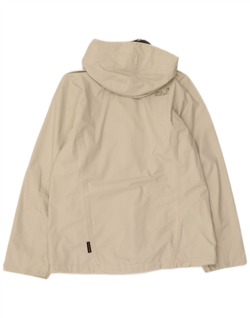 JACK WOLFSKIN Womens Hooded Rain Jacket UK 12/14 Medium Beige Polyamide