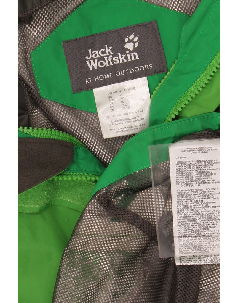 JACK WOLFSKIN Womens Hooded Rain Jacket UK 18/20 XL Green Colourblock