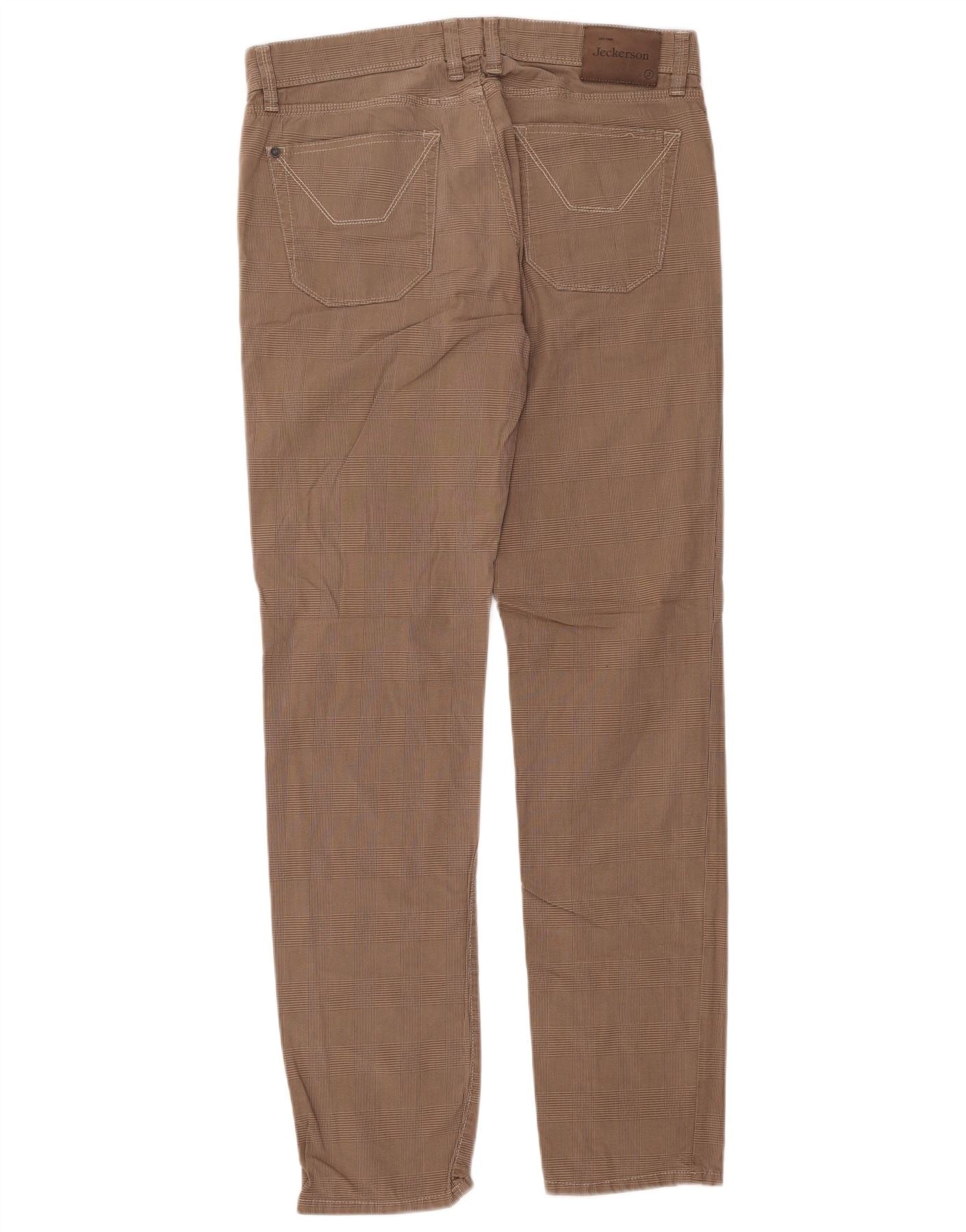 JECKERSON Mens Low Waist Slim Casual Trousers W35 L33 Brown Houndstooth
