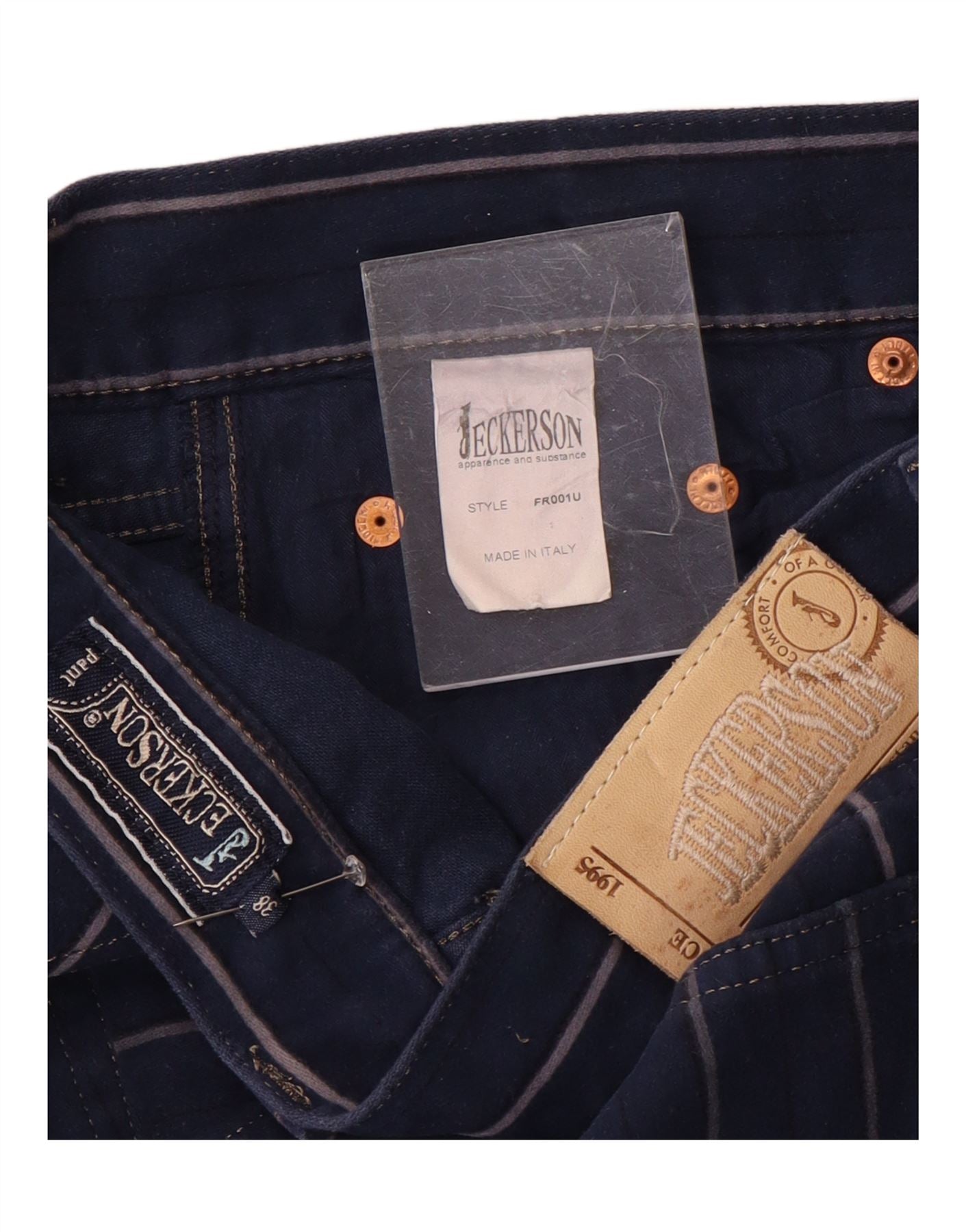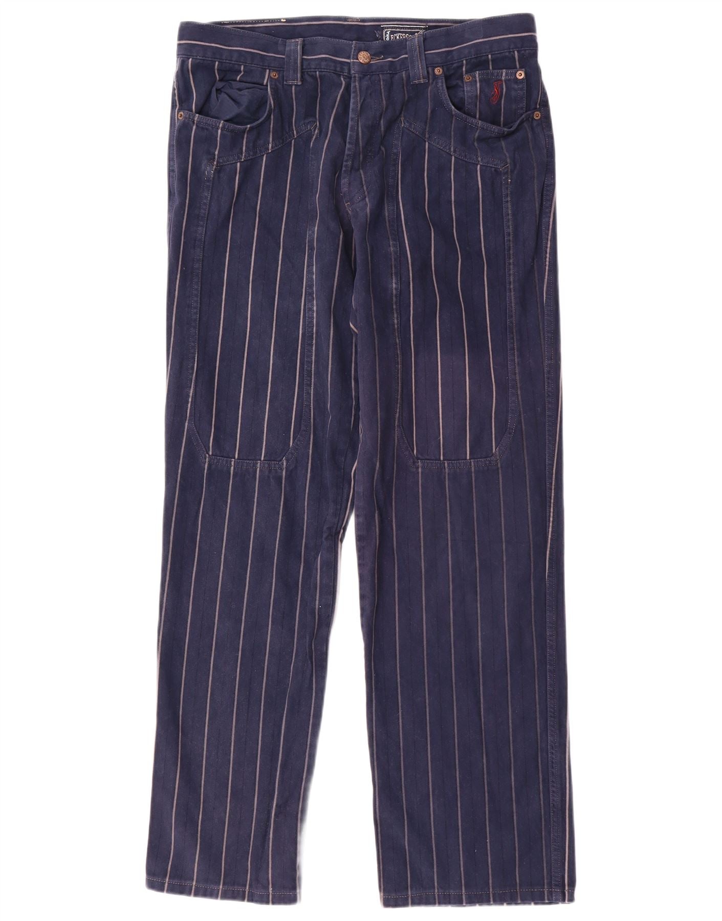 JECKERSON Ανδρικό ίσιο casual παντελόνι W38 L32 Navy Blue ριγέ βαμβακερό