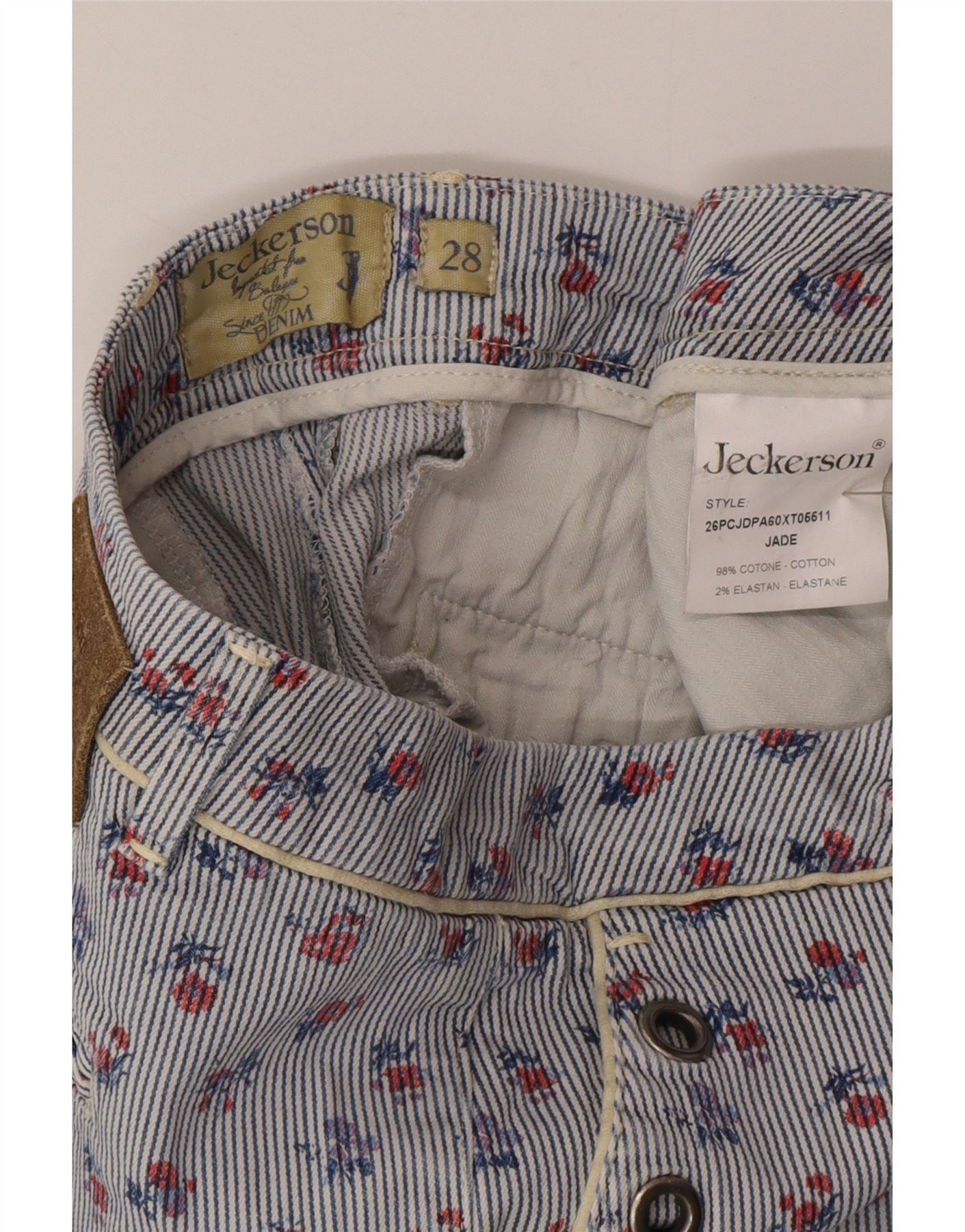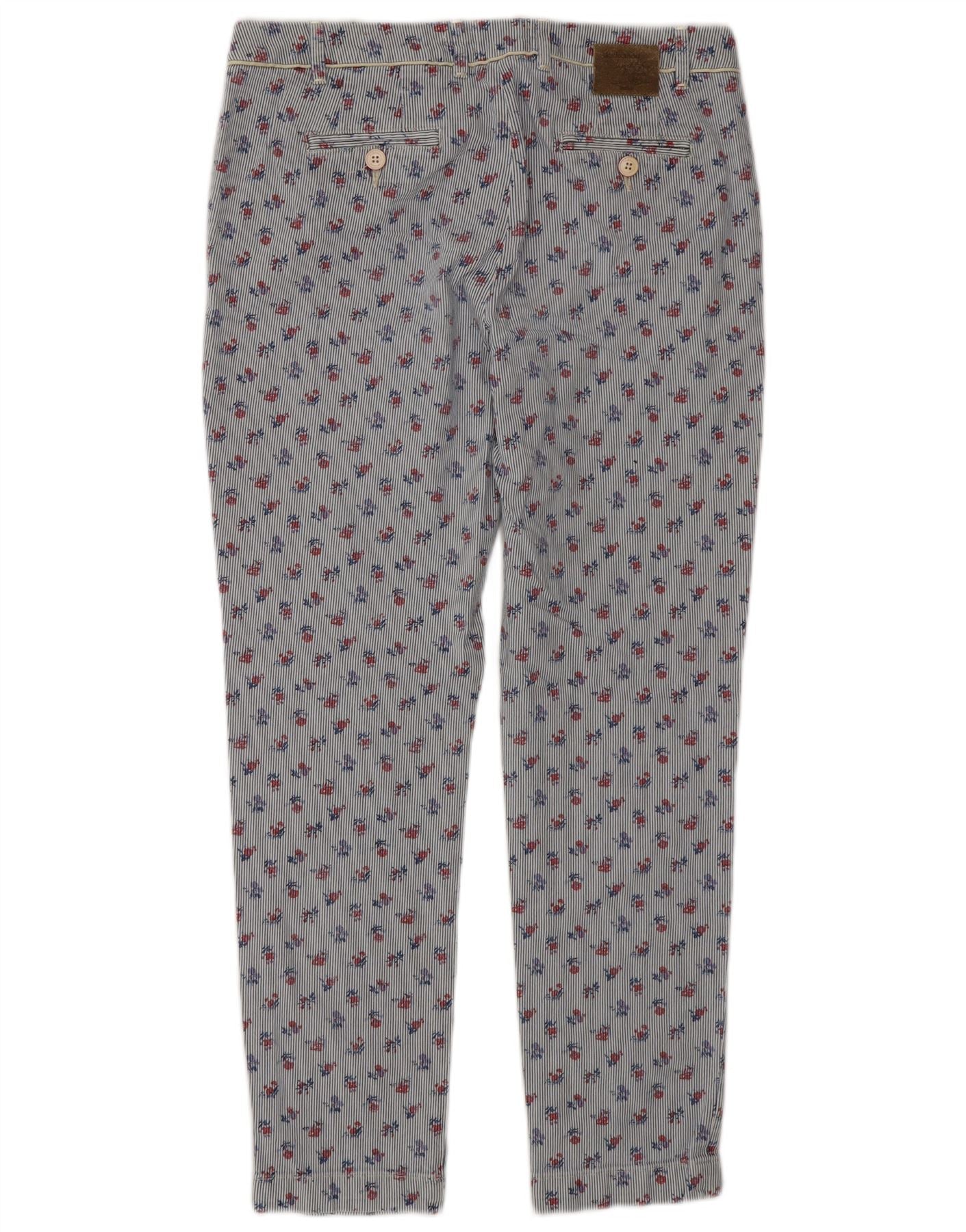 JECKERSON Womens Jade Slim Chino Trousers W28 L26 Blue Floral Cotton