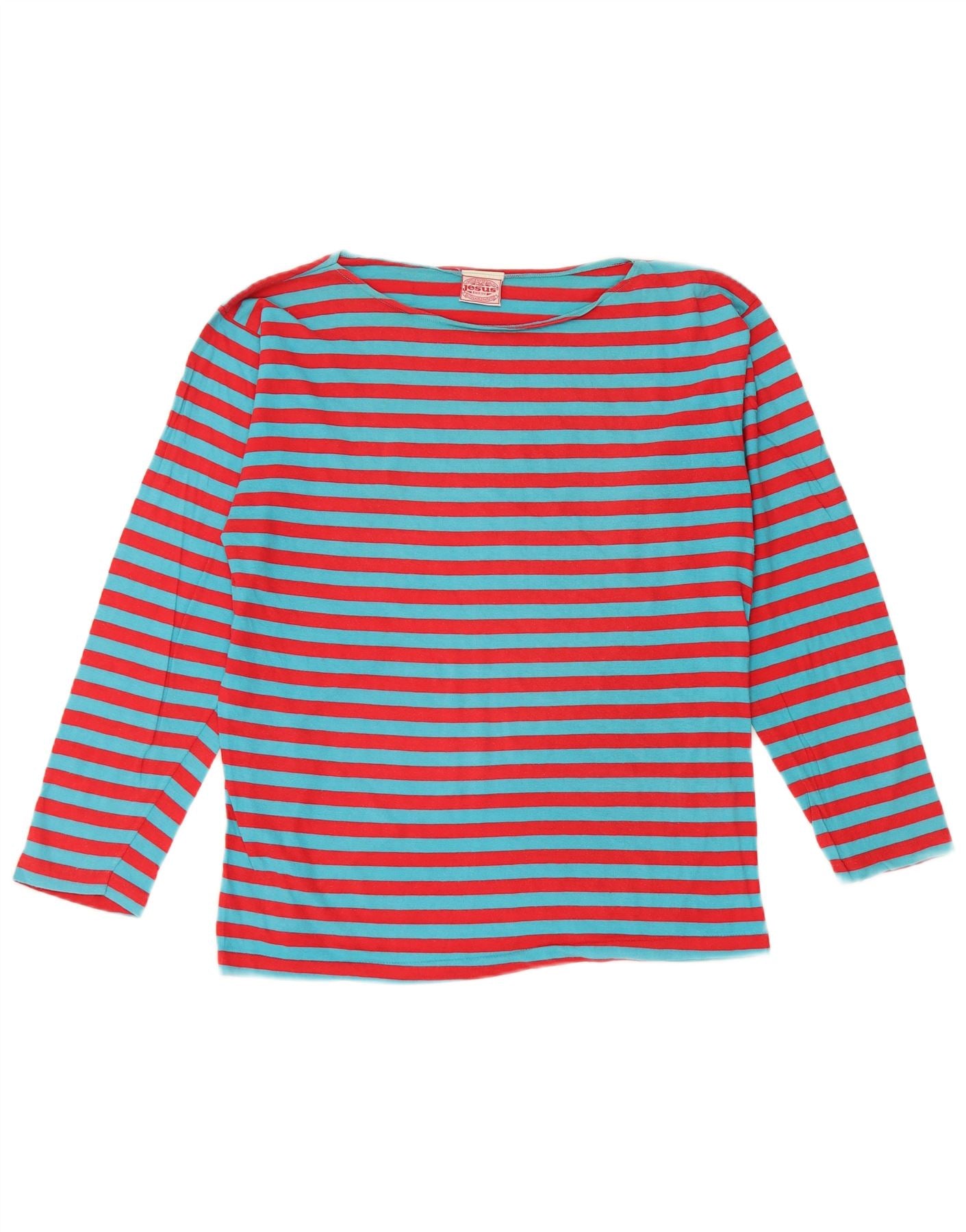 Γυναικείο μπλουζάκι JESUS μακρυμάνικο UK 16 μεγάλο κόκκινο ριγέ βαμβακερό