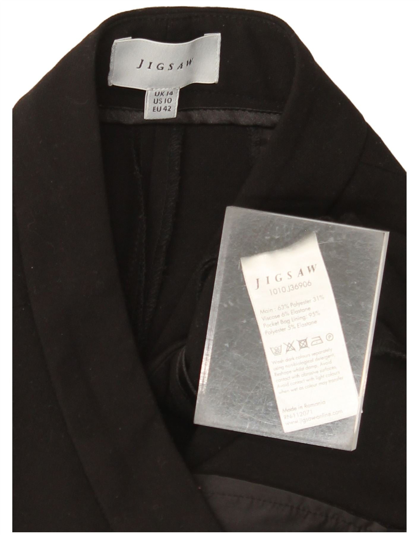 JIGSAW Γυναικείο ίσιο κομμένο παντελόνι UK 14 μεγάλο W34 L25 μαύρο