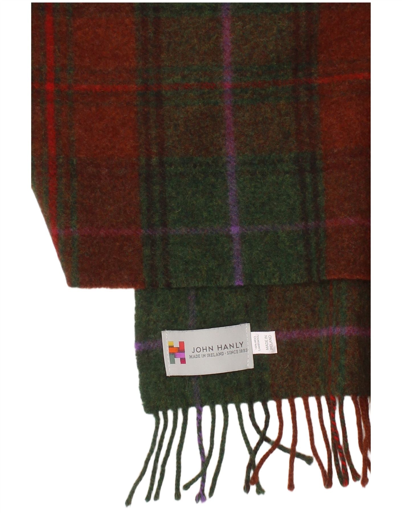 JOHN HANLY Mens Rectangle Scarf One Size Multicoloured Check Lambswool