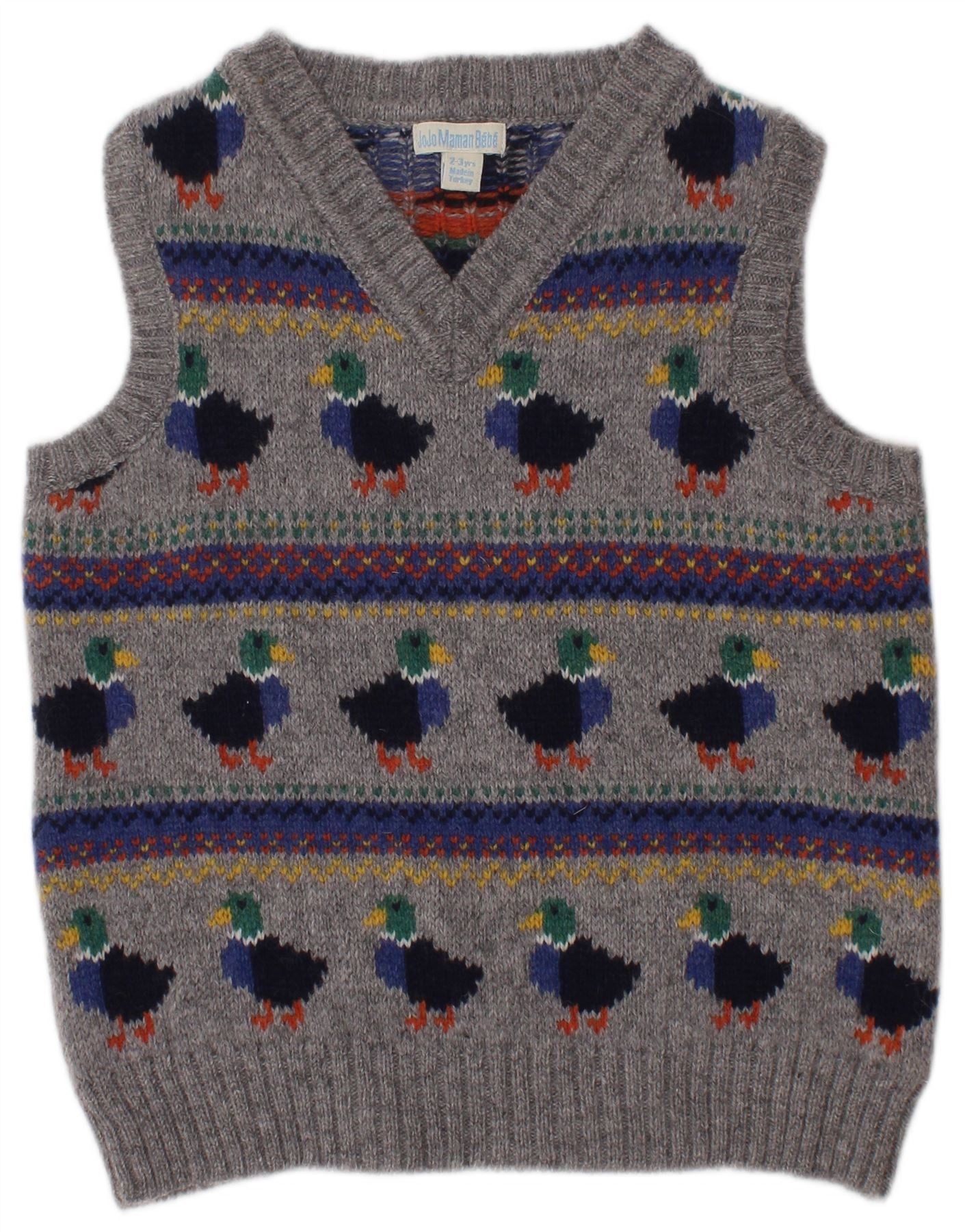 JOJO MAMAN BEBE Boys Vest Tank Top 2-3 Years Grey Fair Isle Lambswool