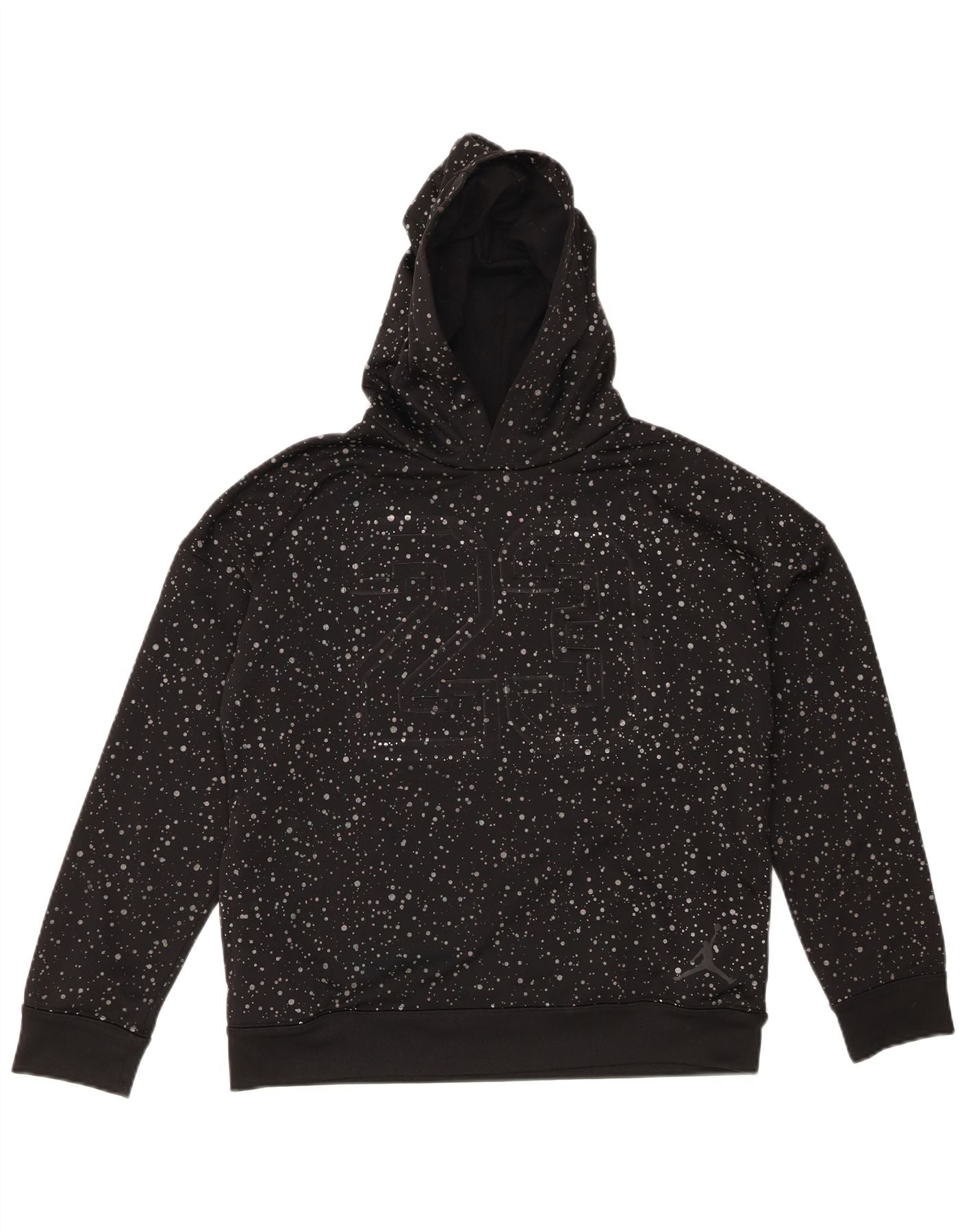 JORDAN Boys Therma-Fit Graphic Hoodie Jumper 13-14 Years XL Black Spotted