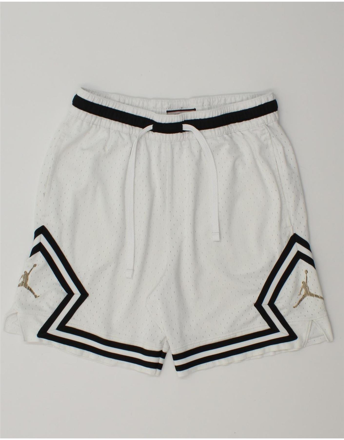 - Περιγραφή AI: Αυτά τα ανδρικά σορτς Jordan είναι κατασκευασμένα από ύφασμα από λευκό διχτυωτό που αναπνέει. Διαθέτουν ελαστική ζώνη μέσης με κορδόνι περίσφιξης για χαλαρή αθλητική εφαρμογή. Ο σχεδιασμός περιλαμβάνει πρακτικές τσέπες. Έντονες μαύρες ρίγες κοσμούν τα πλαϊνά που συμπληρώνονται από το εμβληματικό χρυσό λογότυπο Jumpman. Αυτό δημιουργεί μια χαρακτηριστική γραφική λεπτομέρεια. Η χαλαρή εφαρμογή εξασφαλίζει άνεση και ελευθερία κινήσεων ιδανική για αθλητικά ή casual ντύσιμο.