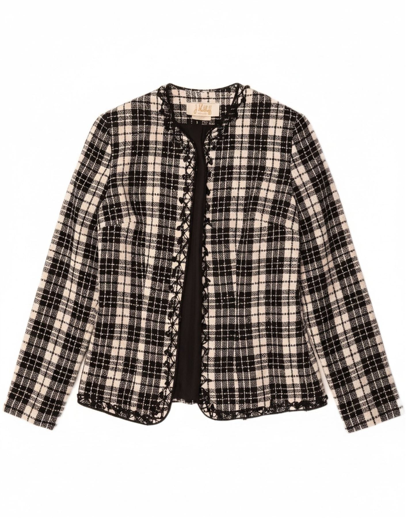 JOSEPH RIBKOFF Womens Open Blazer Jacket UK 14 Medium Black Check Acrylic