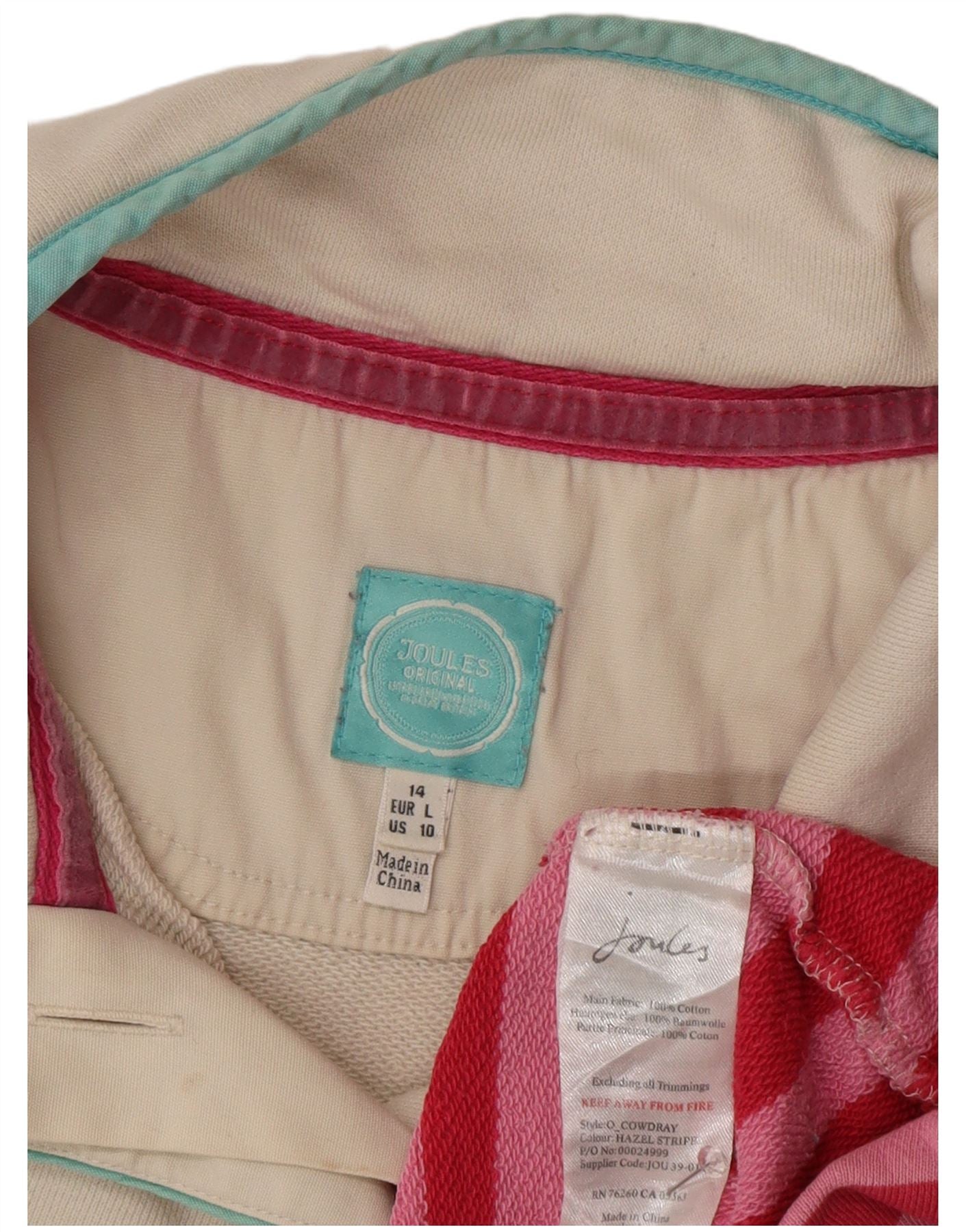 Joules Γυναικεία φούτερ με λαιμόκοψη με κουμπιά Jumper UK 14 Μεγάλο ροζ βαμβακερό ριγέ