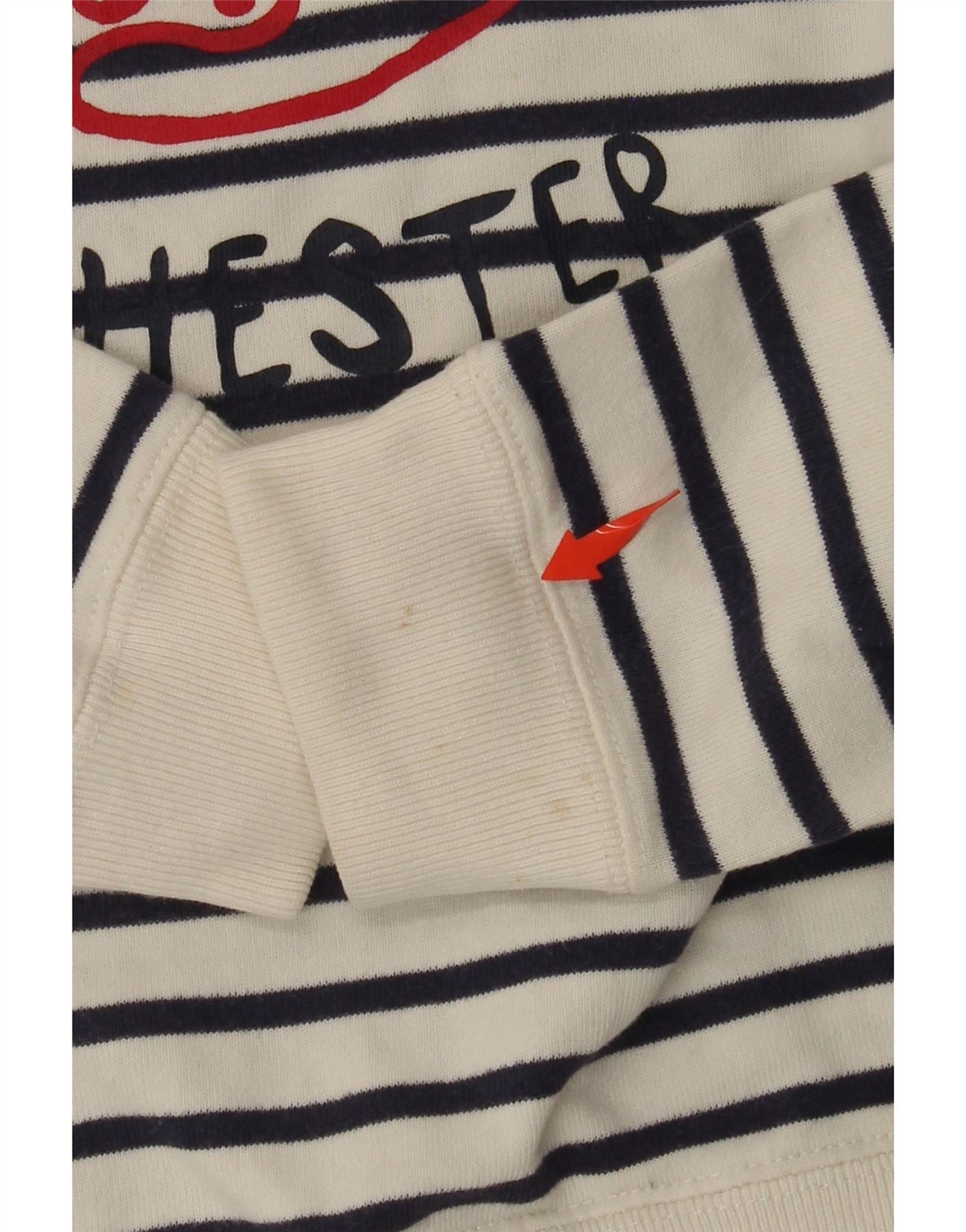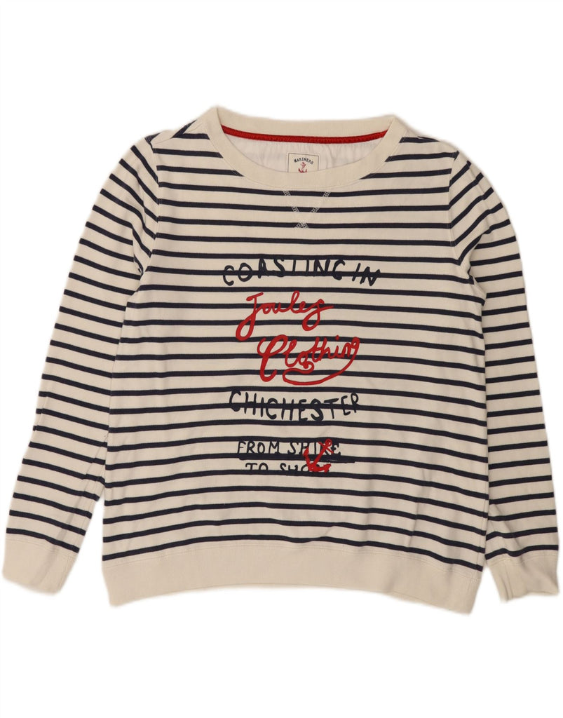 JOULES Womens Graphic Sweatshirt Jumper UK 14 Large White Striped Cotton