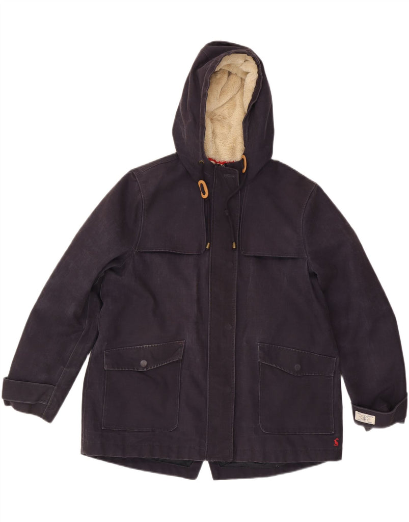 JOULES Womens Hooded Sherpa Parka Jacket UK 16 Large Navy Blue Cotton