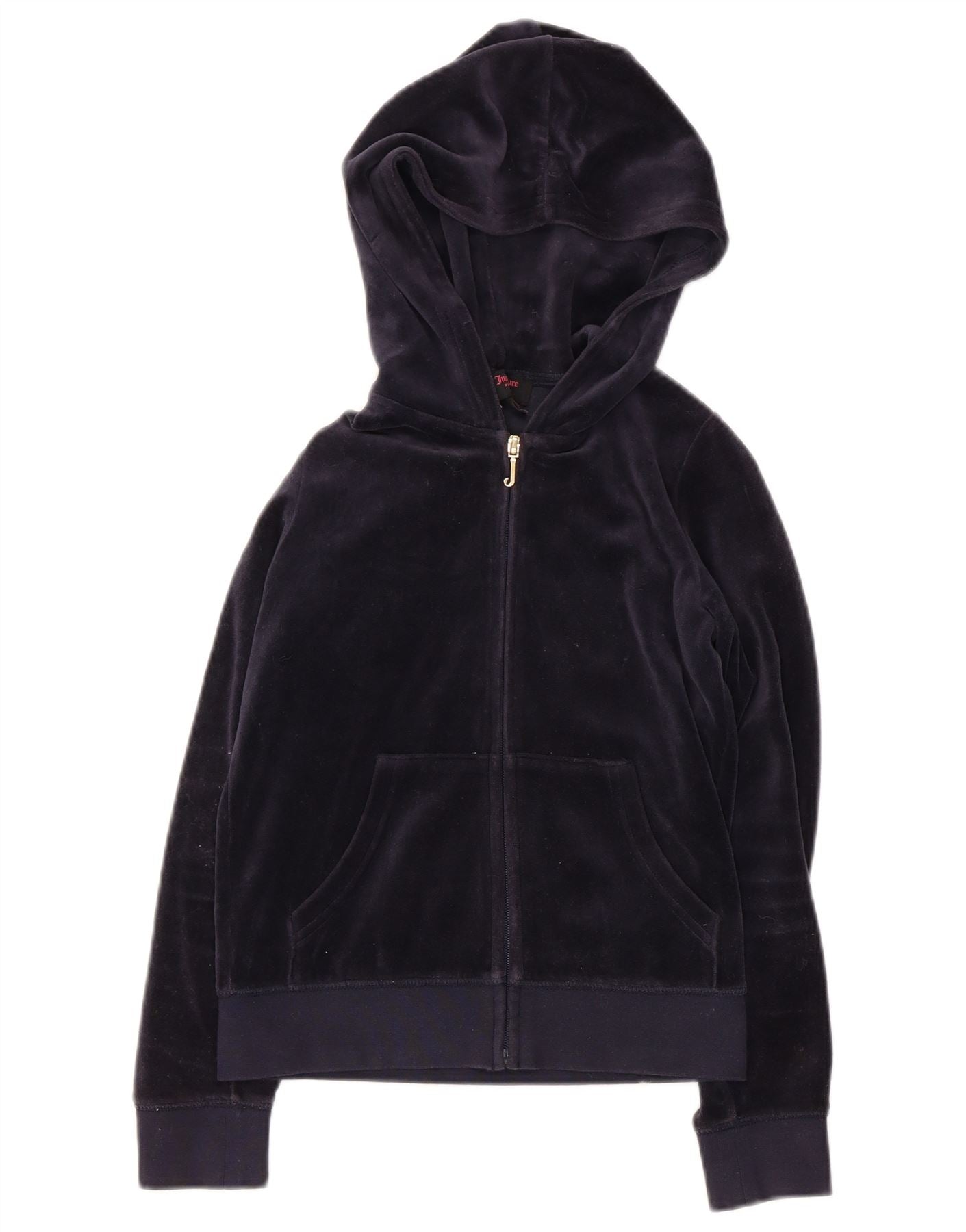 JUICY COUTURE Girls Graphic Zip Hoodie Sweater 9-10 Years Navy Blue Cotton
