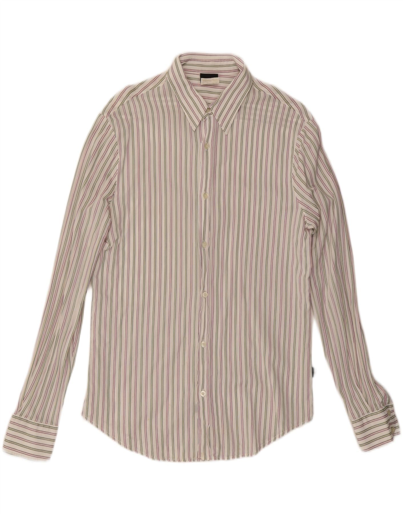 JUST CAVALLI Mens Shirt XL White Pinstripe Cotton